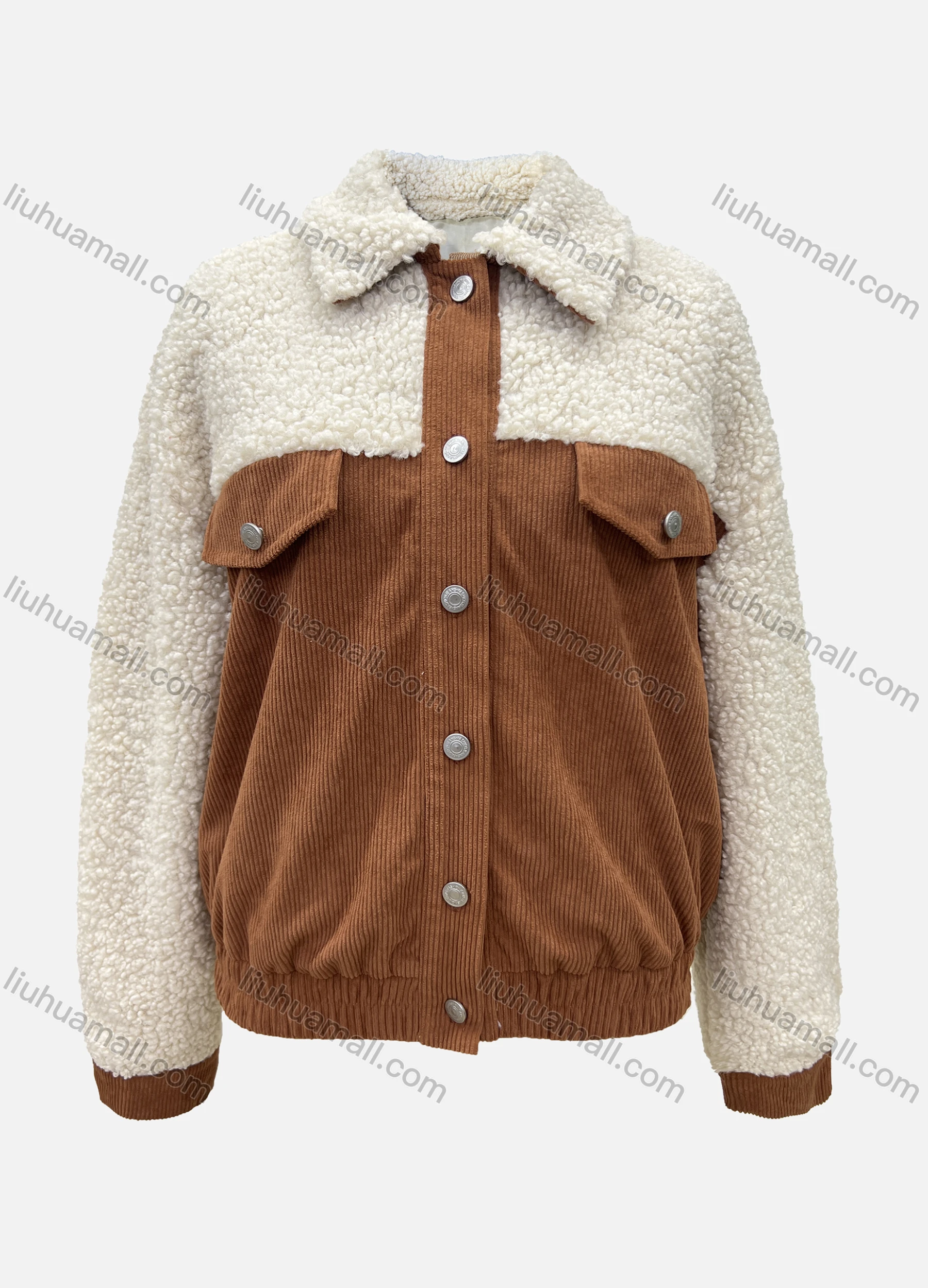 Wholesale Women's Casual Corduroy Splicing Fluff Button Down Fluffy Jacket