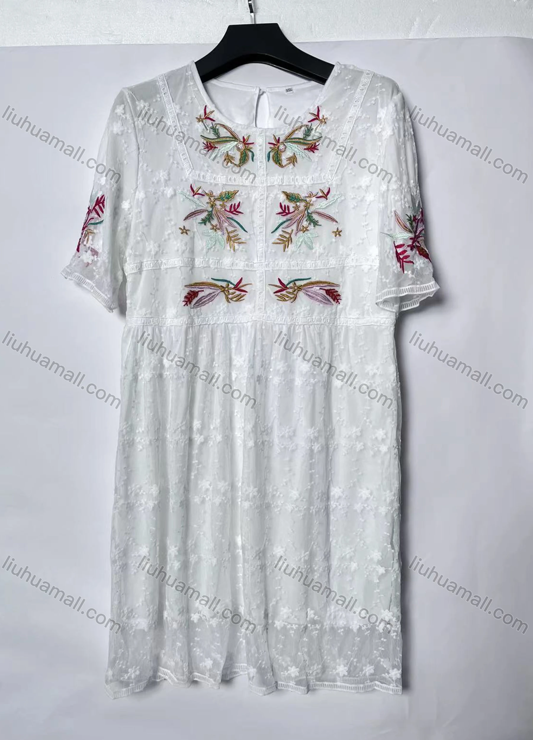 Wholesale Women's Casual Crew Neck Embroidered Appliques Tunic TB2625343#