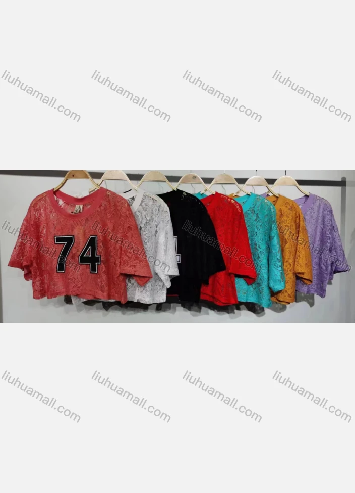 Wholesale Women's Casual Crew Neck Half Sleeve Lace Crop Top