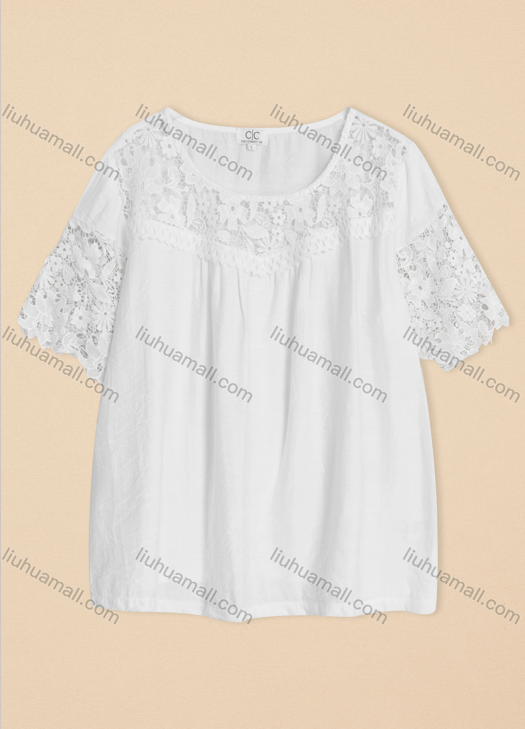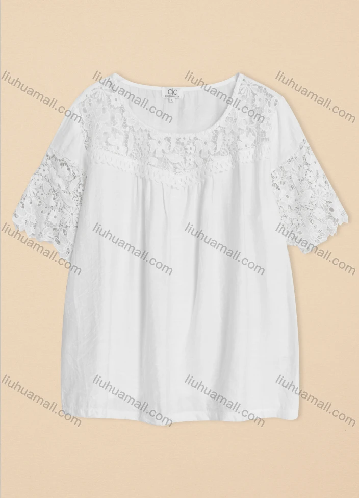 Wholesale Women's Casual Crew Neck Lace Sleeve Plain Blouse