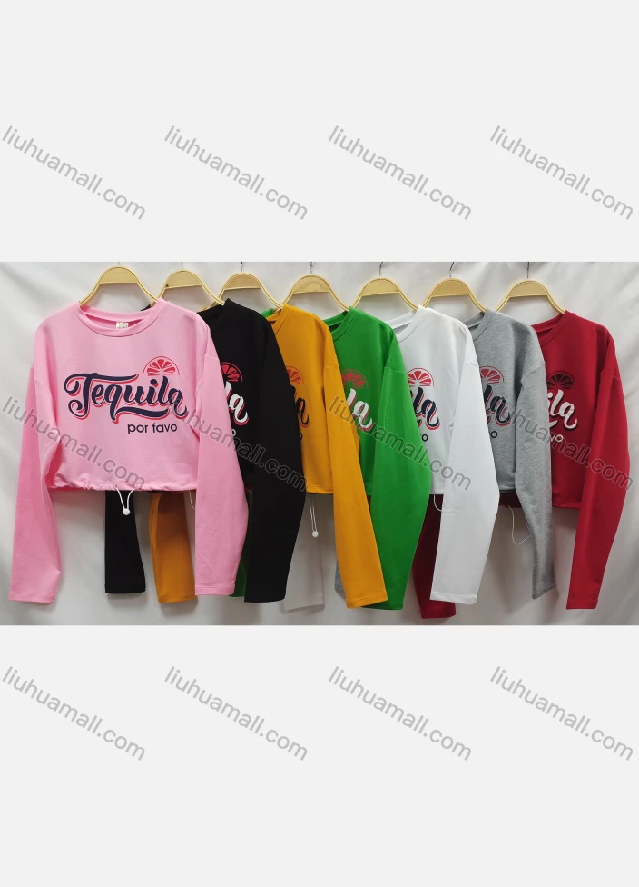 Wholesale Women's Casual Crew Neck Long Sleeve Letter Drawstring Crop Top