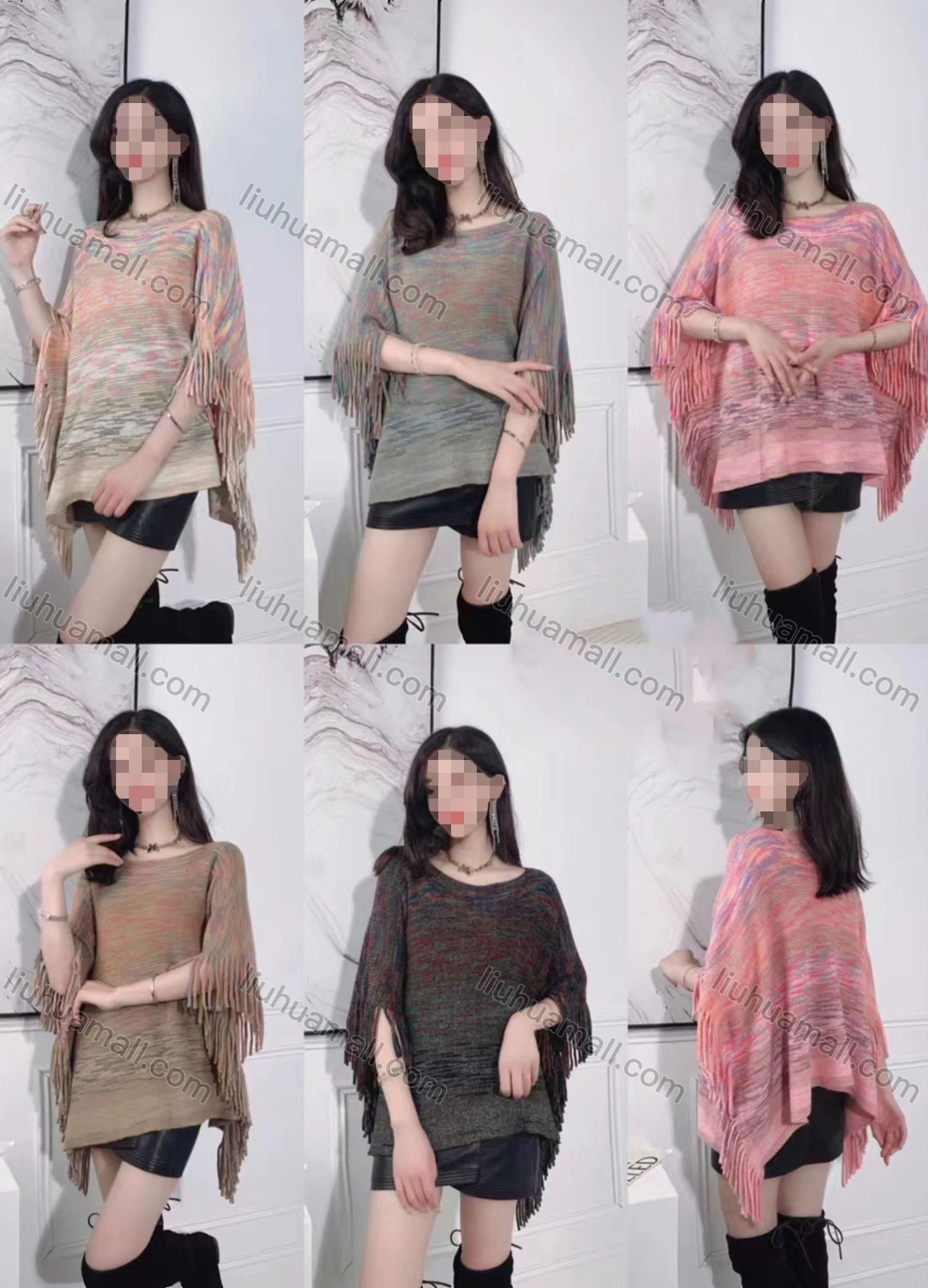 Wholesale Women's Casual Crew Neck Plain Scarf Trim Pullover Cape