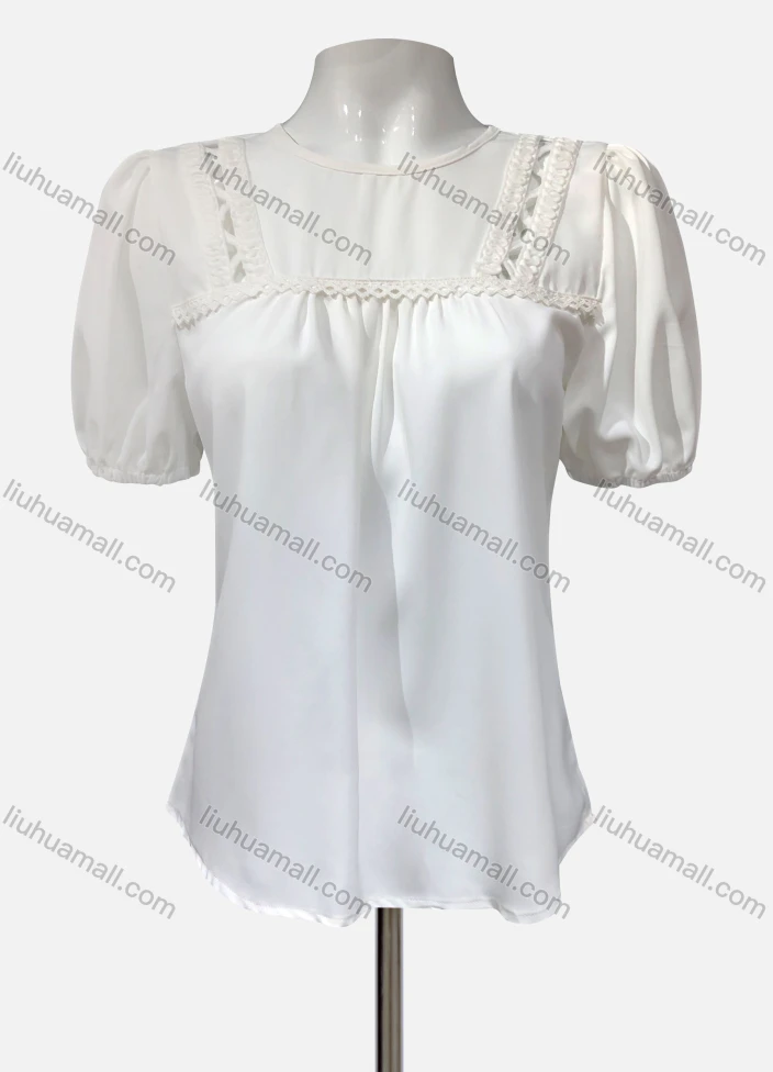 Wholesale Women's Casual Crew Neck Puff Sleeve Hollow Out Knit Blouse