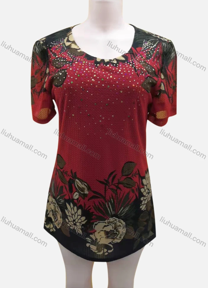Wholesale Women's Casual Crew Neck Short Sleeve Allover Print Dress