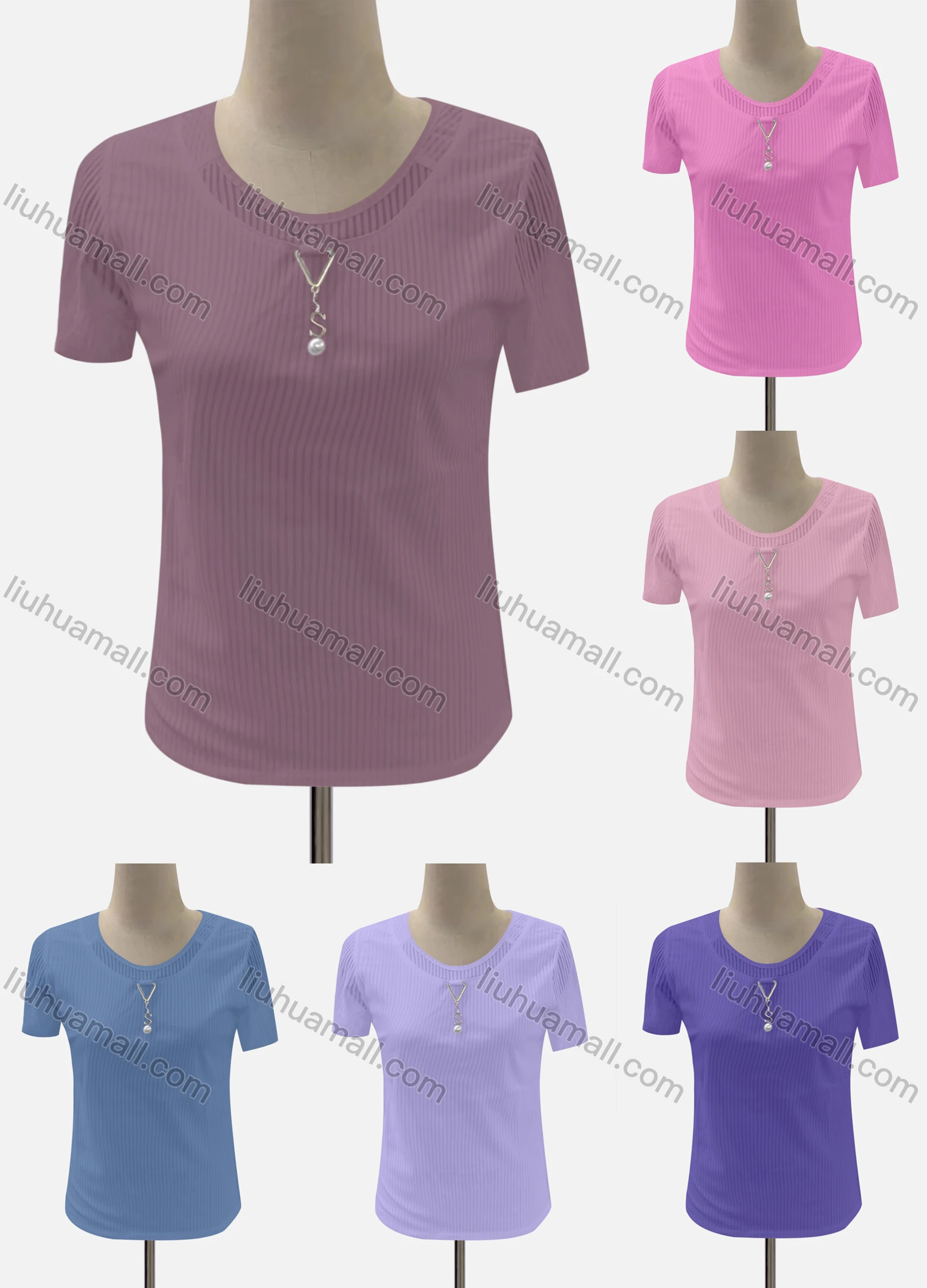Wholesale Women's Casual Crew Neck Short Sleeve Blouse