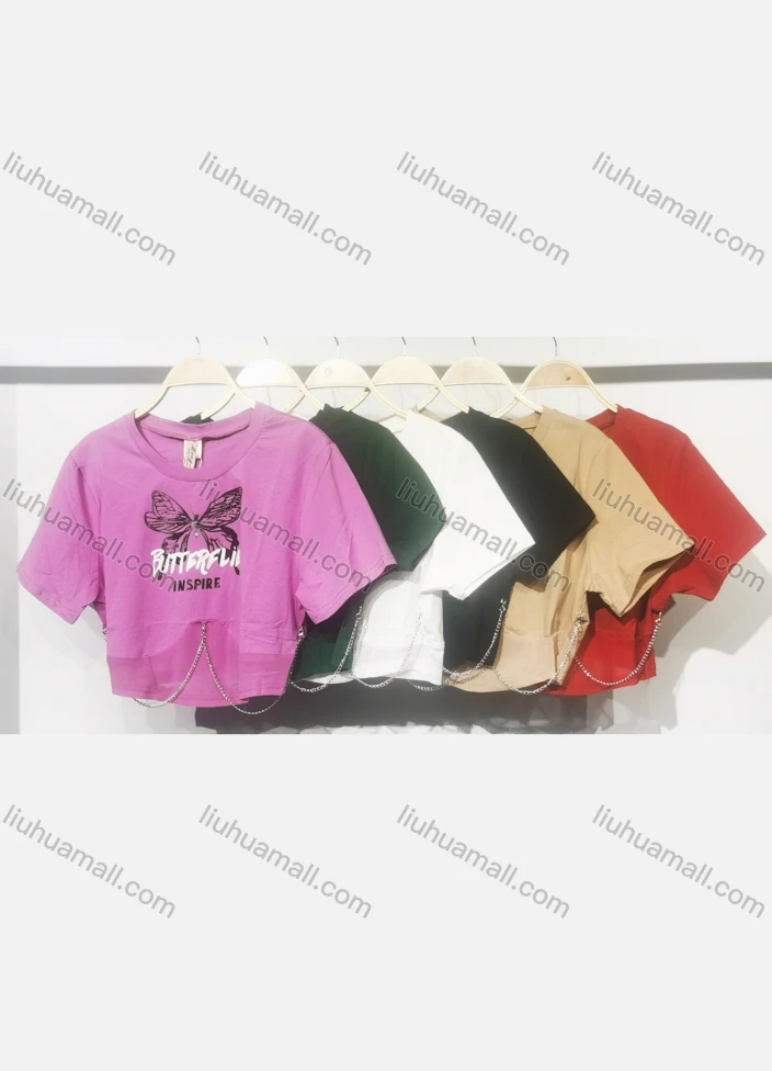 Wholesale Women's Casual Crew Neck Short Sleeve Chain Decro Crop Top