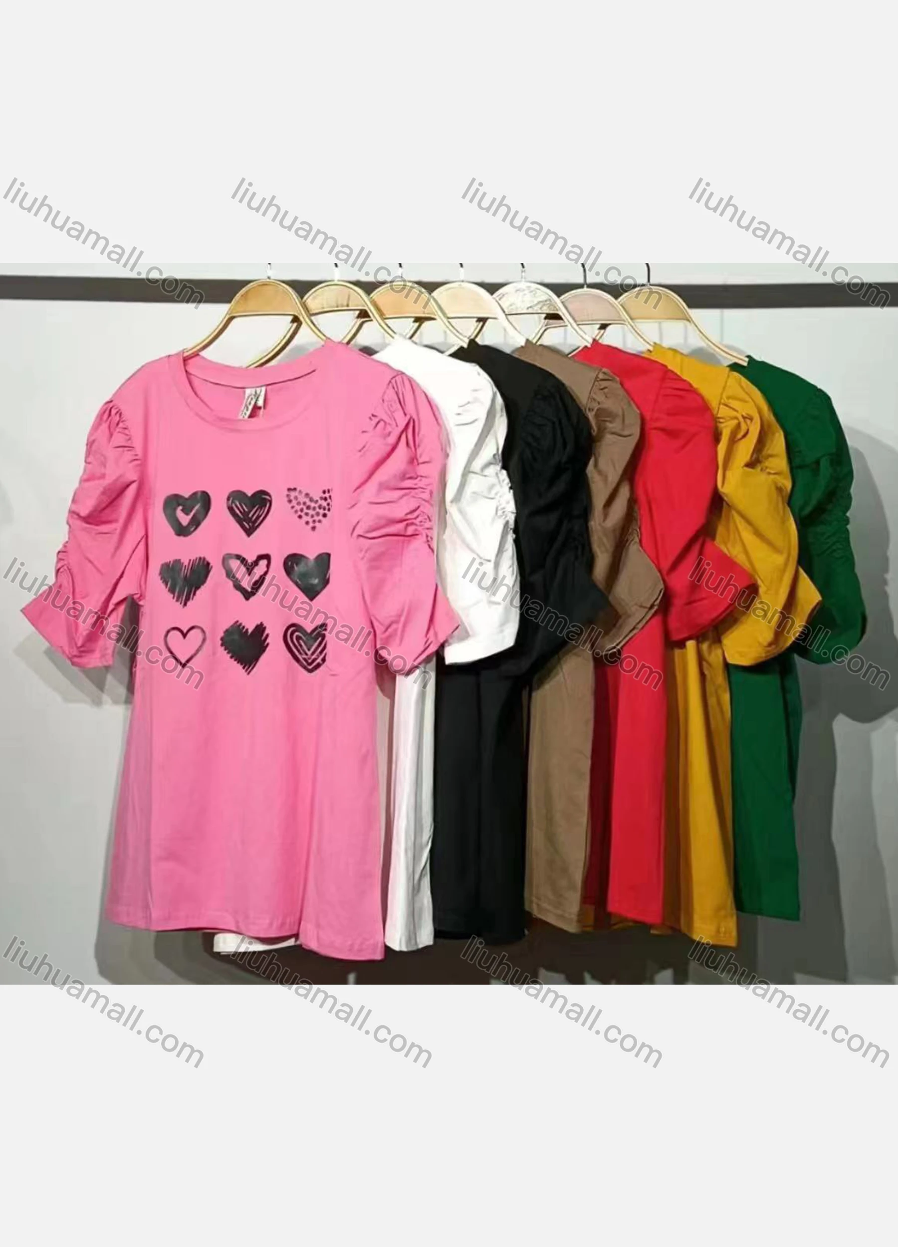 Wholesale Women's Casual Crew Neck Short Sleeve Heart Print Top