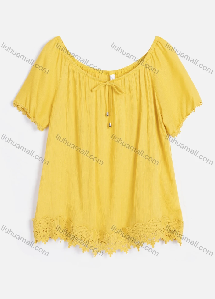 Wholesale Women's Casual Crew Neck Short Sleeve Lace Up Guipure Lace Blouse RL-07#