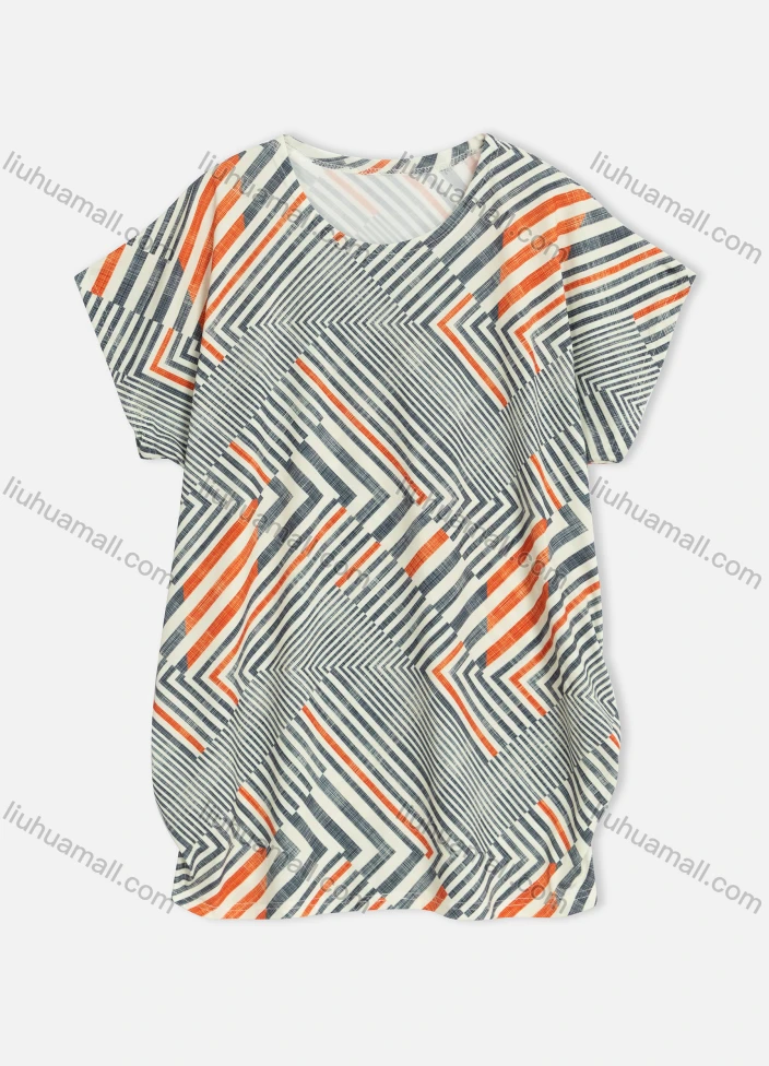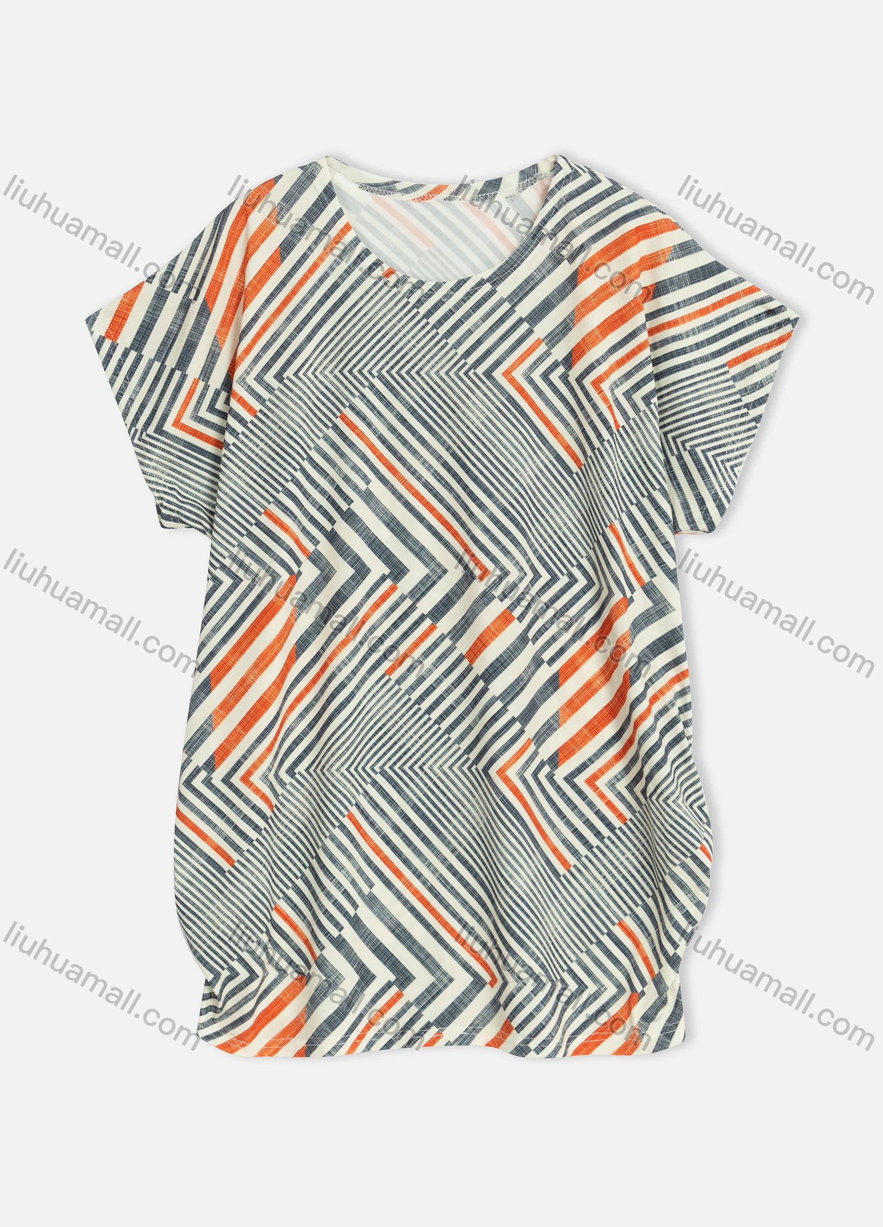 Wholesale Women's Casual Crew Neck Short Sleeve Striped Blouse
