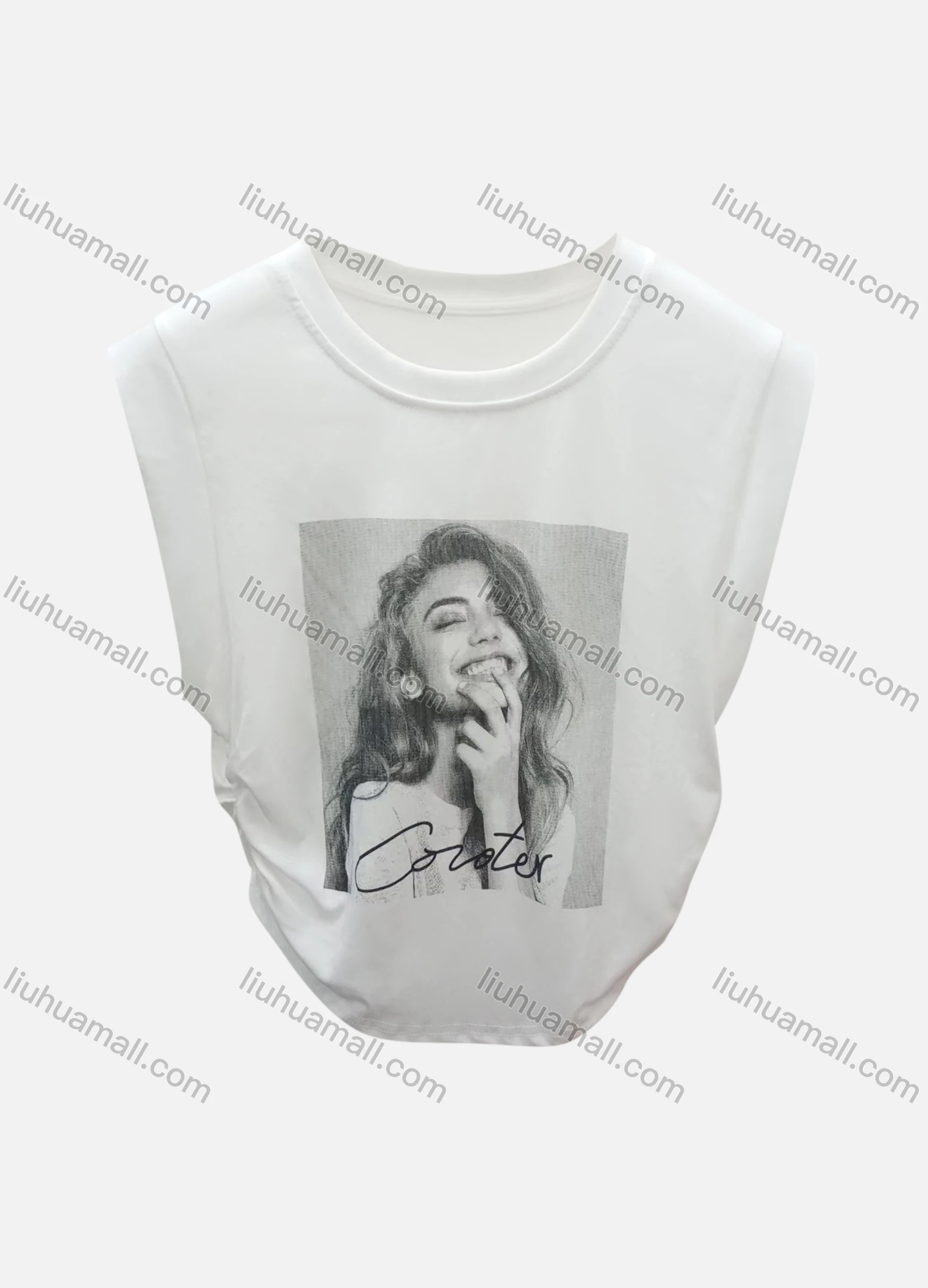 Wholesale Women's Casual Crew Neck Sleeveless Graphic Letter Crop Top 6008#