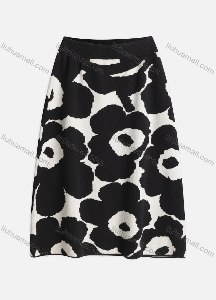 Wholesale Women's Casual Elastic Waist Allover Print Knit Midi Skirts A454#