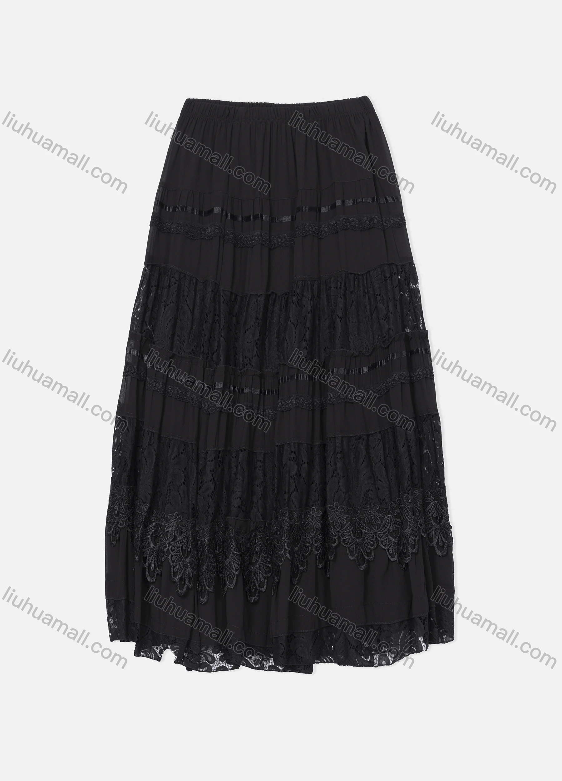 Wholesale Women's Casual Elastic Waist Guipure Lace Chiffon Plain A-Line Skirt 1022-1#