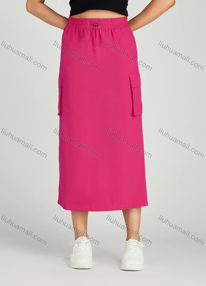 Wholesale Women's Casual Elastic Waist Pocket Drawstring Plain Midi Skirt MT305#