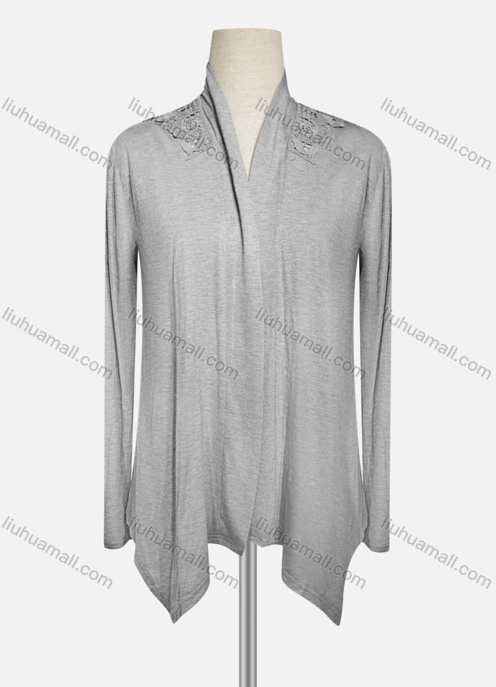 Wholesale Women's Casual Embroidered Long Sleeve High Neck Plain Cardigan