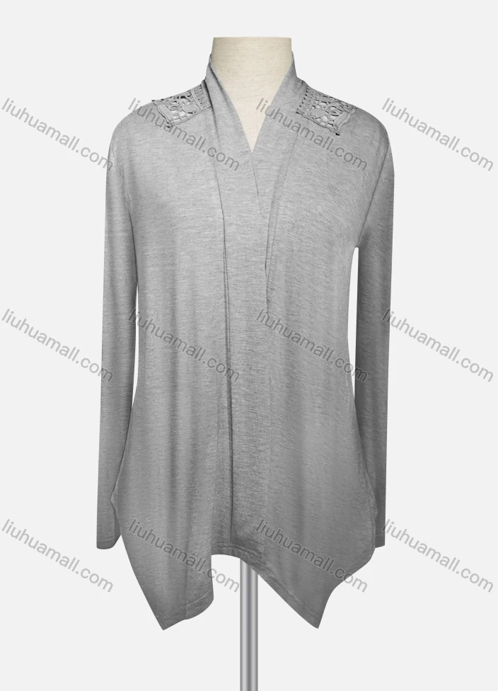 Wholesale Women's Casual Embroidered Long Sleeve High Neck Plain Cardigan