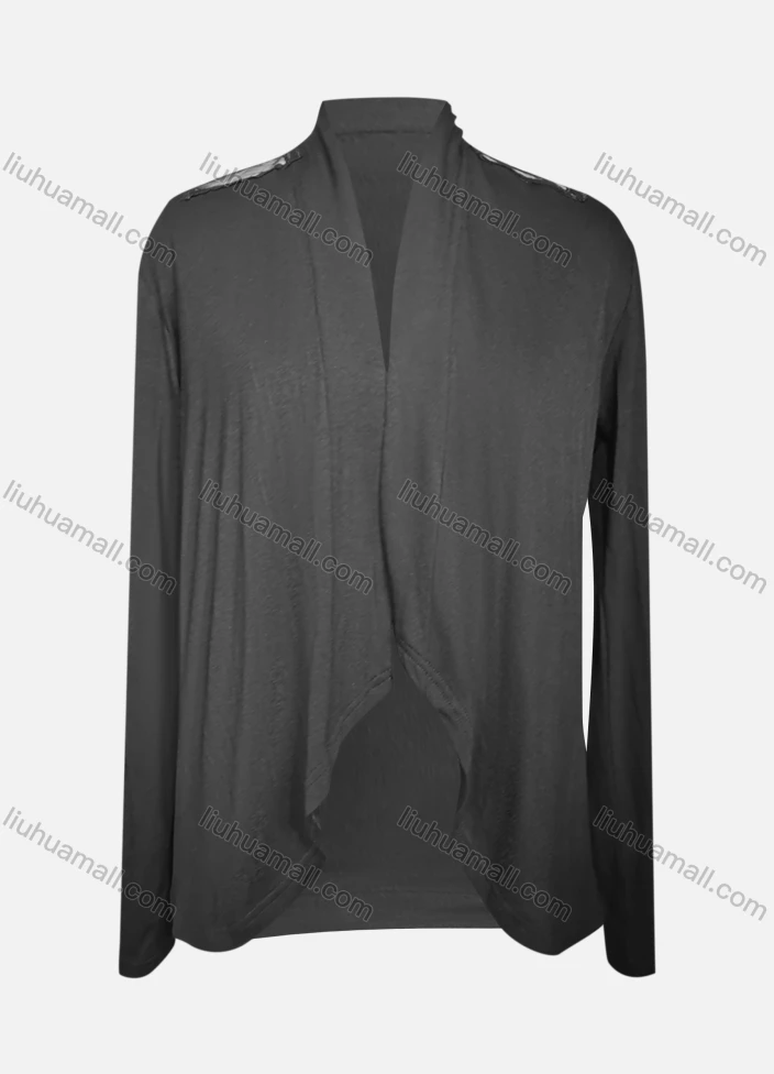 Wholesale Women's Casual Embroidered Long Sleeve High Neck Plain Cardigan - Liuhuamall