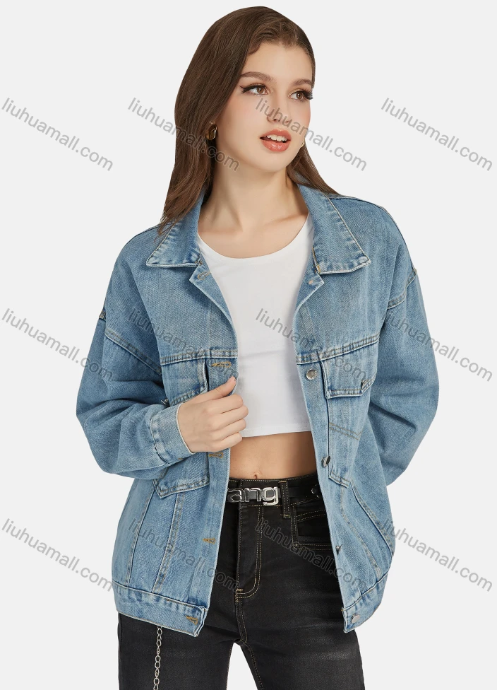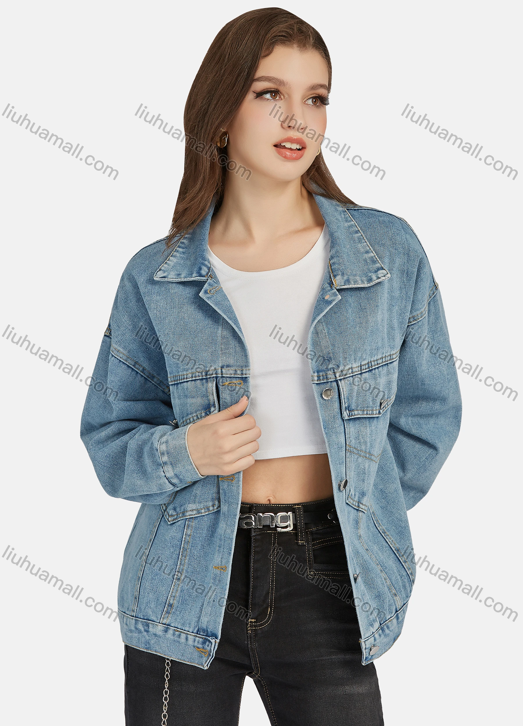 Wholesale Women's Casual Flap Pockets Button Down Lapel Denim Jacket G-F01#