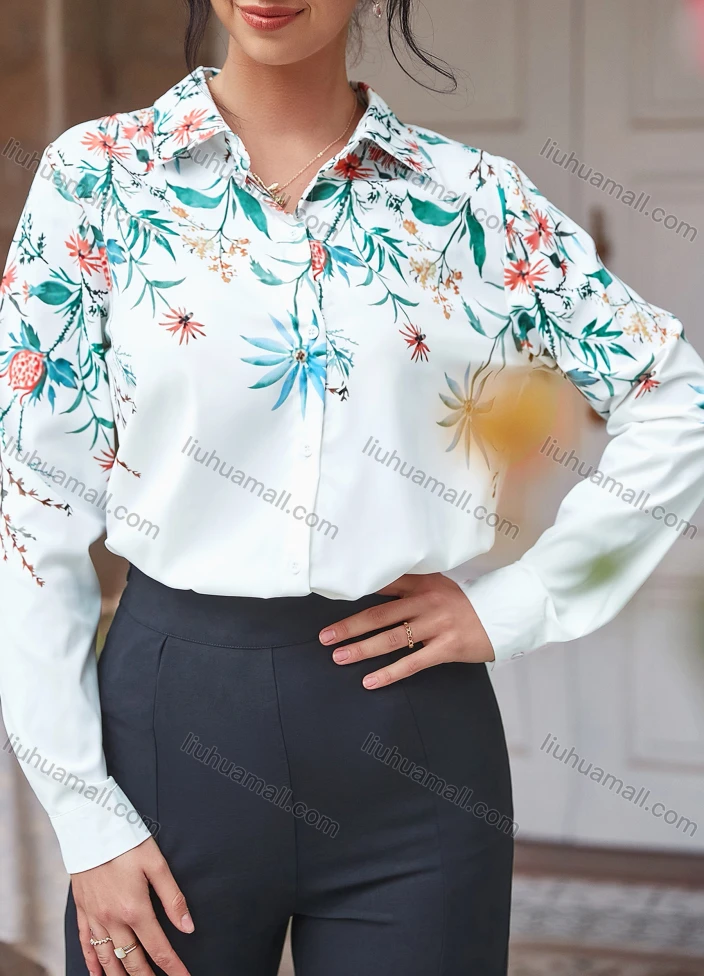 Wholesale Women's Casual Floral Print Long Sleeve Button Down Shirt