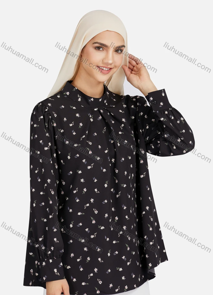 Wholesale Women's Casual Floral Print Mock Neck Key-hole Long Sleeve Blouse 1375#
