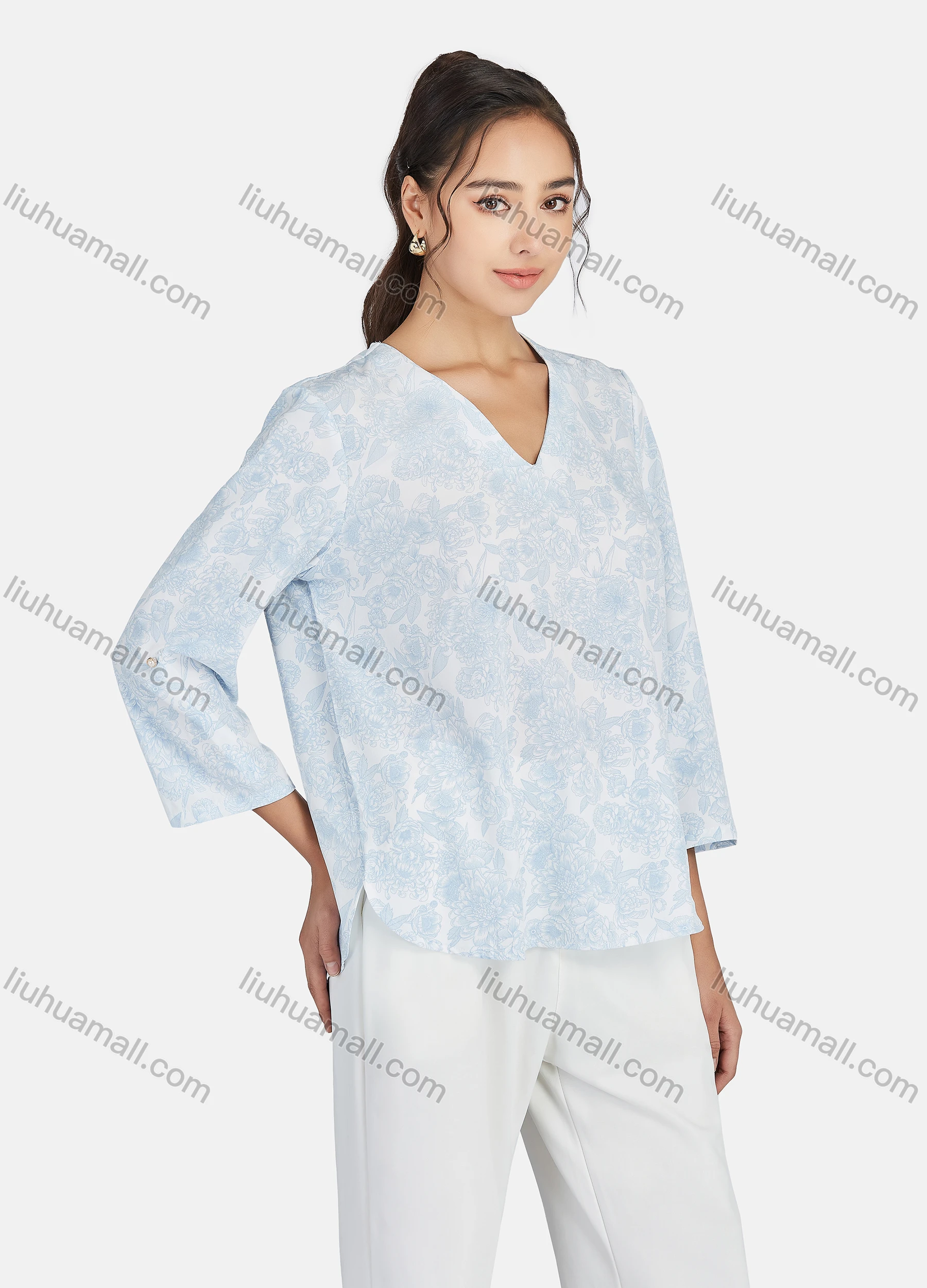 Wholesale Women's Casual Floral Print V Neck Long Sleeve Blouse