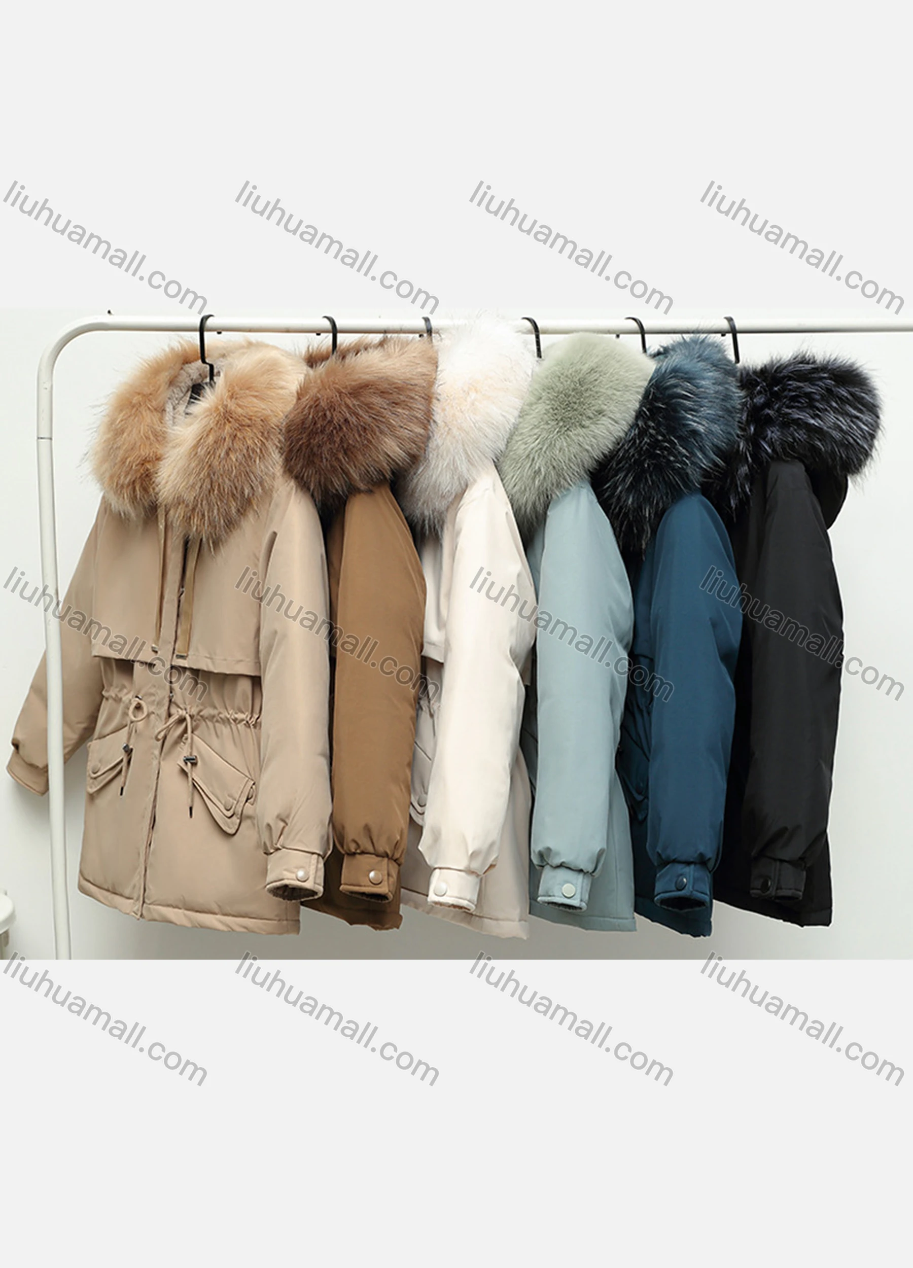 Wholesale Women's Casual Fuzzy Hood Zipper Front Drawstring Thermal Lined Parka Coat 2211#