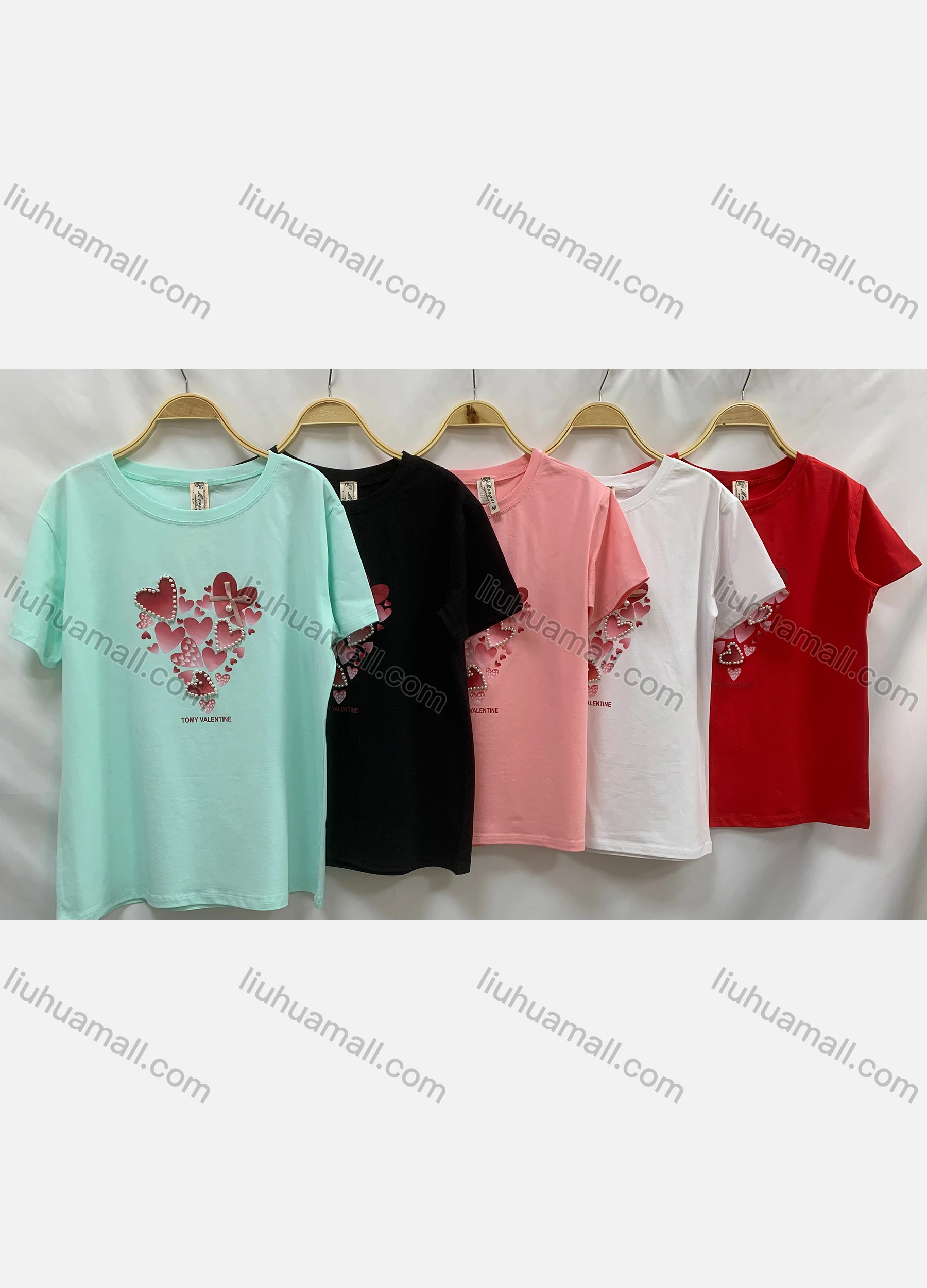 Wholesale Women's Casual Heart Print Crew Neck Short Sleeve T-Shirt
