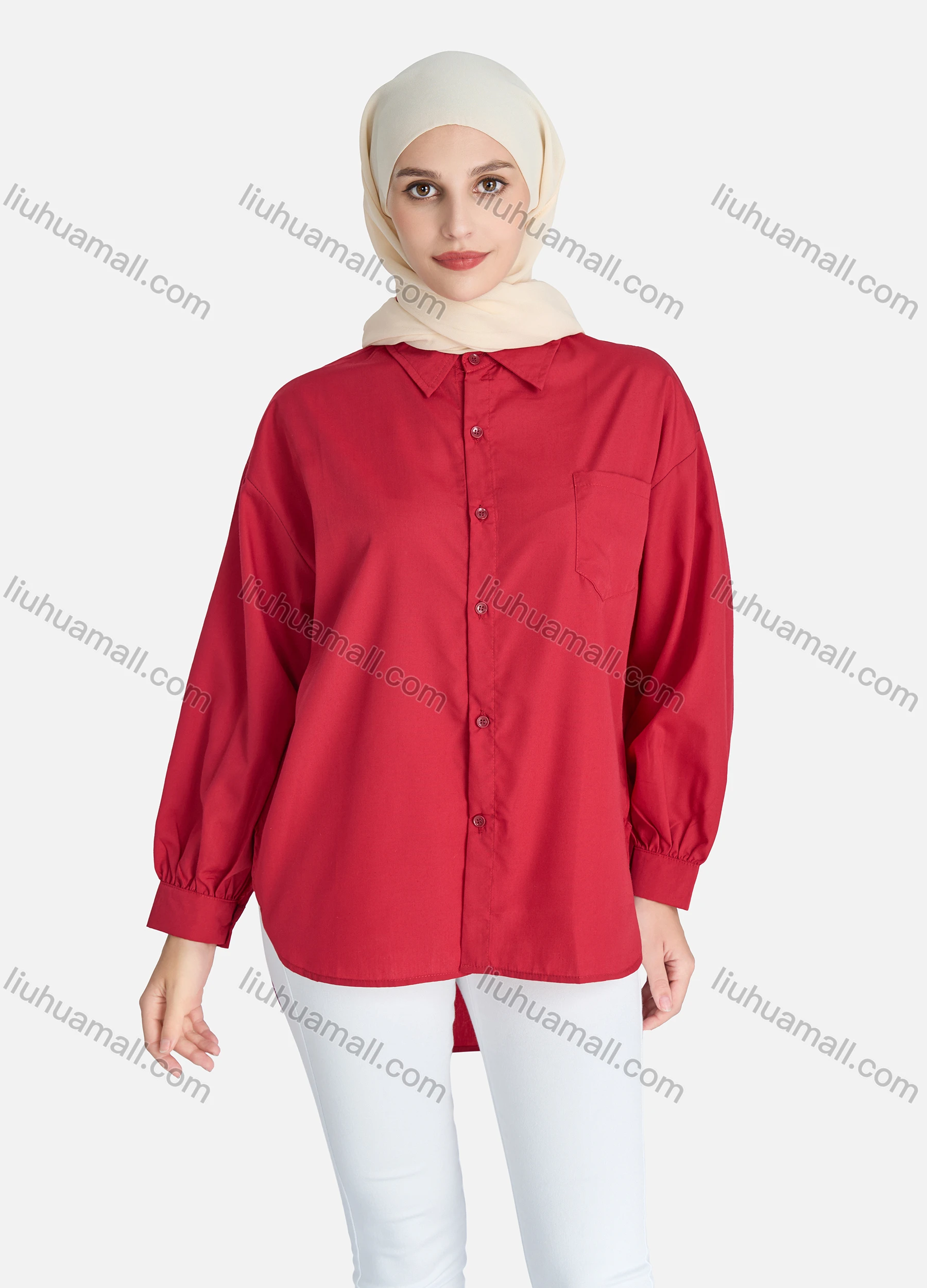 Wholesale Women's Casual High Low Hem Button Down Shirt Without Hijab