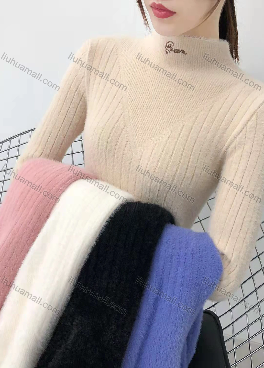 Wholesale Women's Casual High Neck Embroidery Slim Fit Plain Pullover Sweater #913