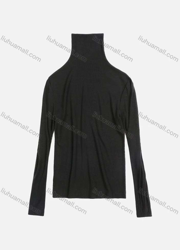 Wholesale Women's Casual High Neck Long Sleeve Knit Plain Comfy Blouse
