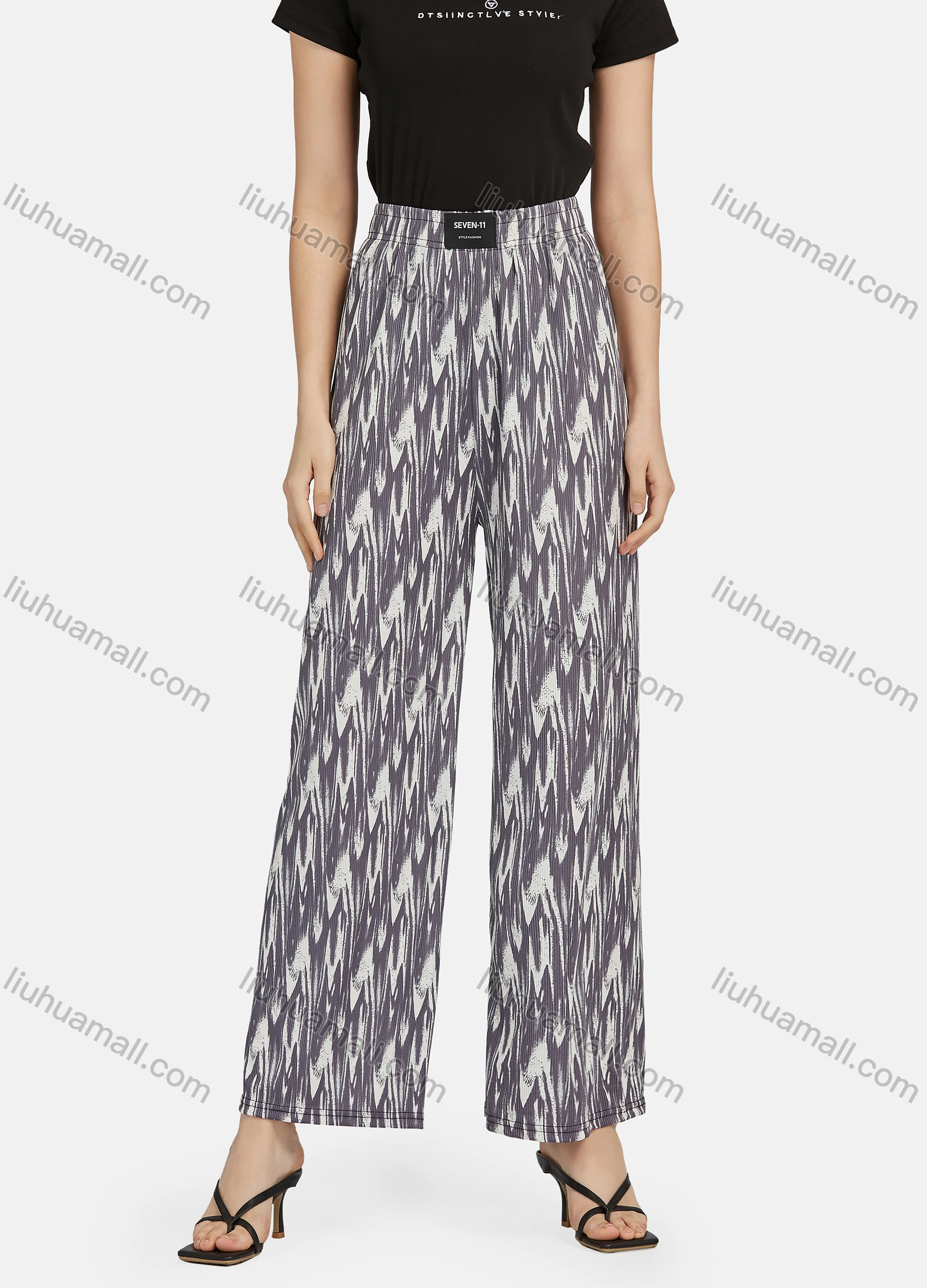 Wholesale Women's Casual High Waist Drawstring Allover Print Wide Leg Pants 2015#
