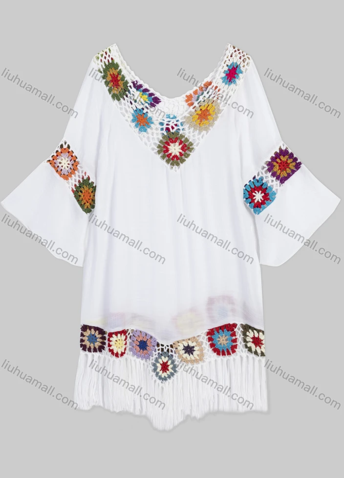 Wholesale Women's Casual Hollow Out Scarf Hem Embroidered Floral Cover Up Top A077#