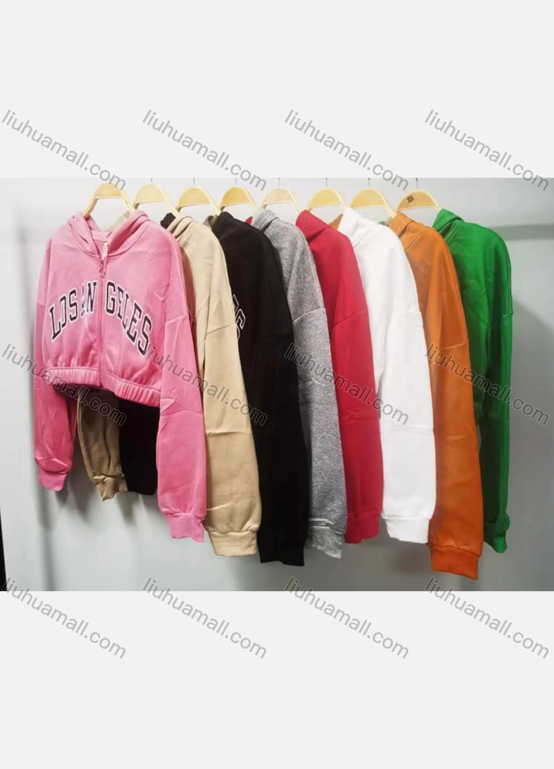 Wholesale Women's Casual Hooded Zipper Colorblock Letter Crop Hoodies