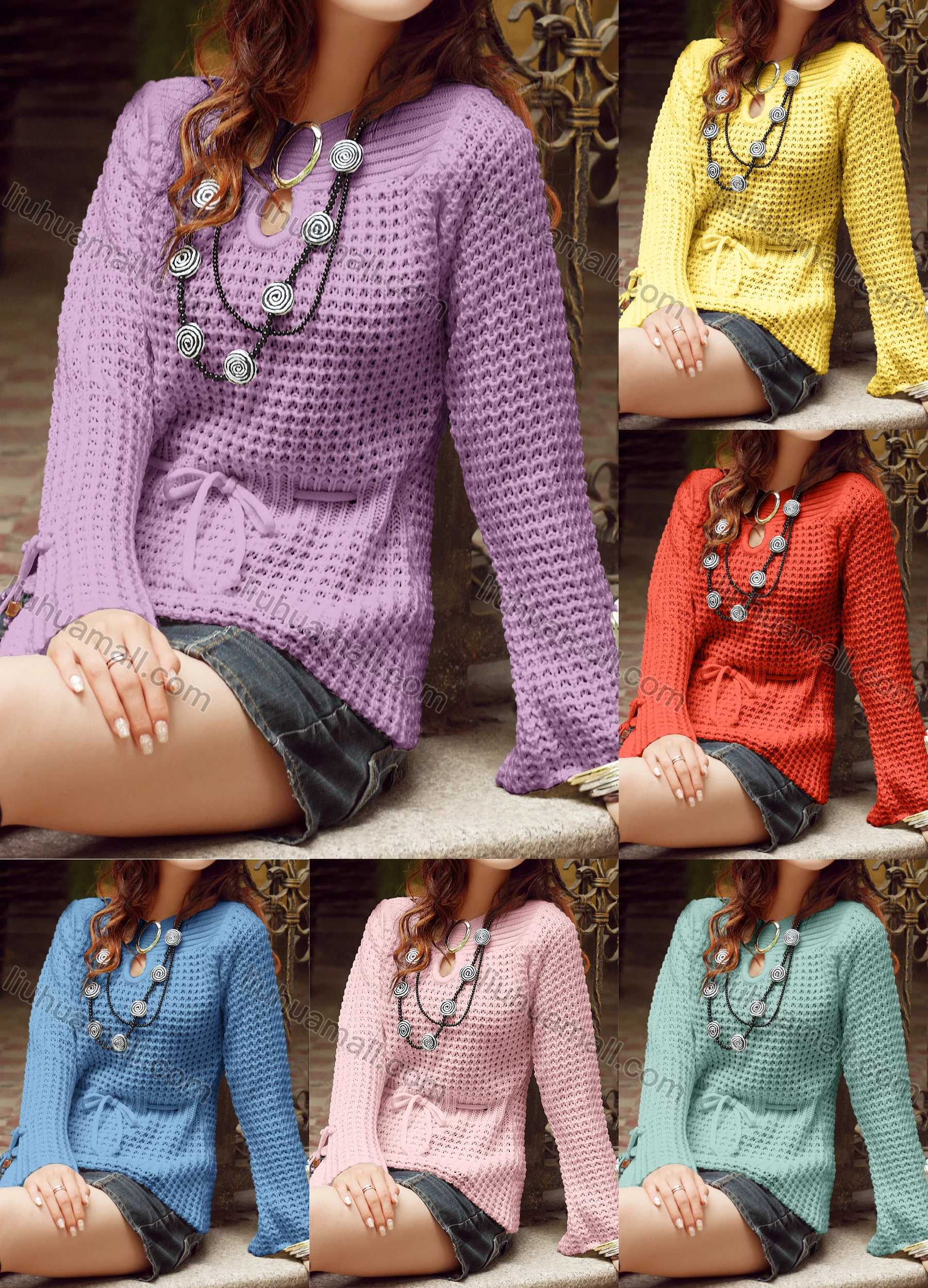 Wholesale Women's Casual Keyhole Neck Long Sleeve Chunky Knit Sweater 1450#