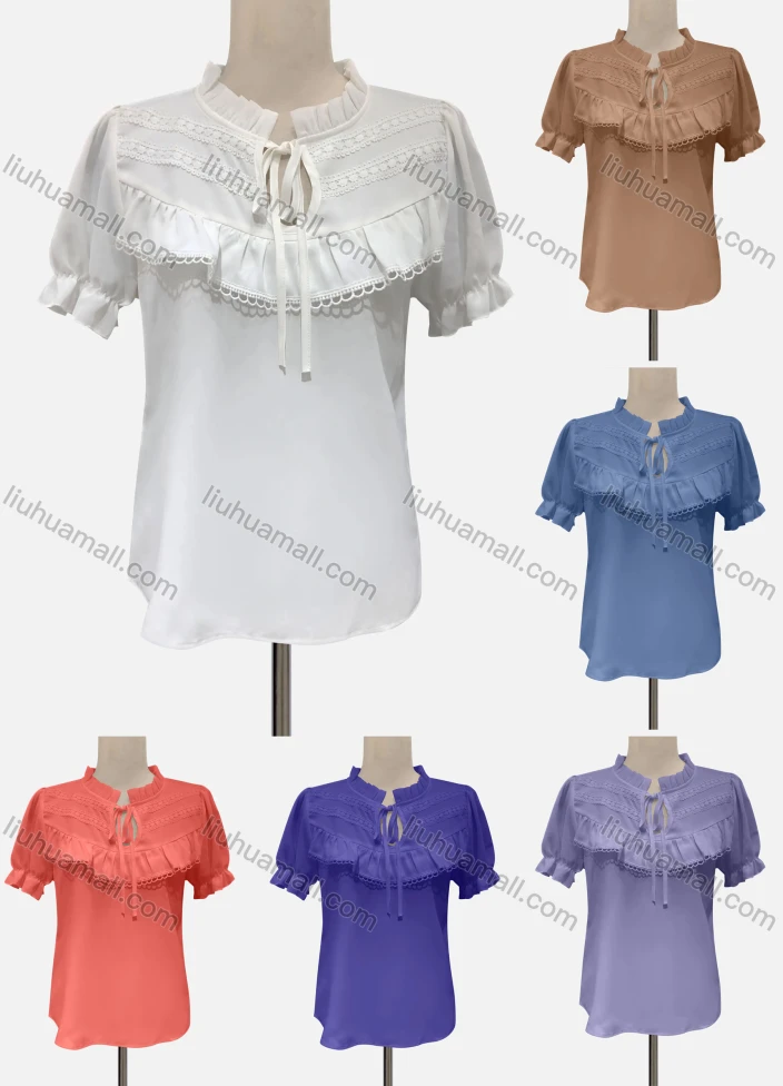 Wholesale Women's Casual Keyhole Neck Puff Sleeve Appliques Knit Blouse