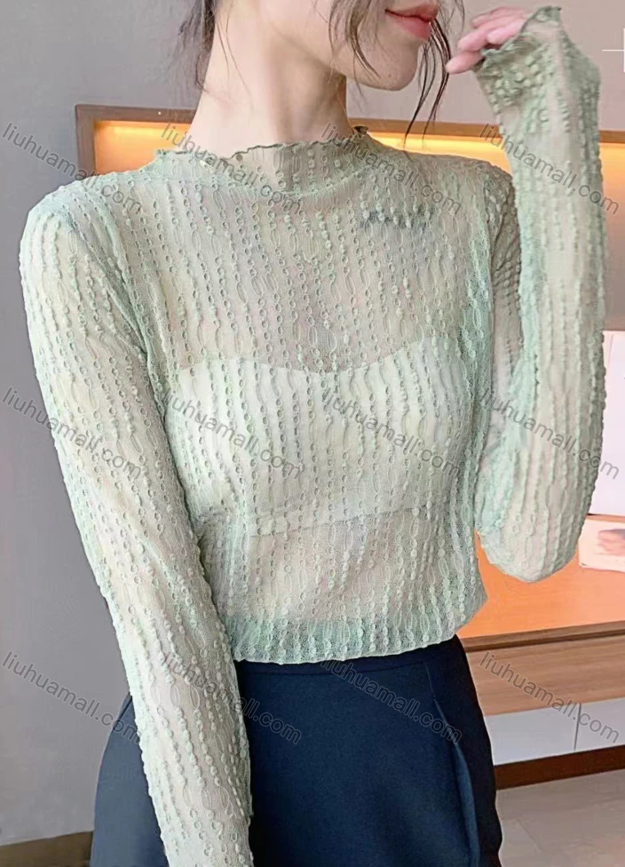 Wholesale Women's Casual Lace Mock Neck Semi-sheer Long Sleeve Blouse