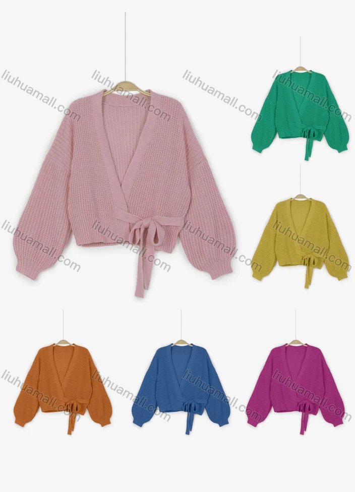 Wholesale Women's Casual Lantern Plain Sweater Cardigan