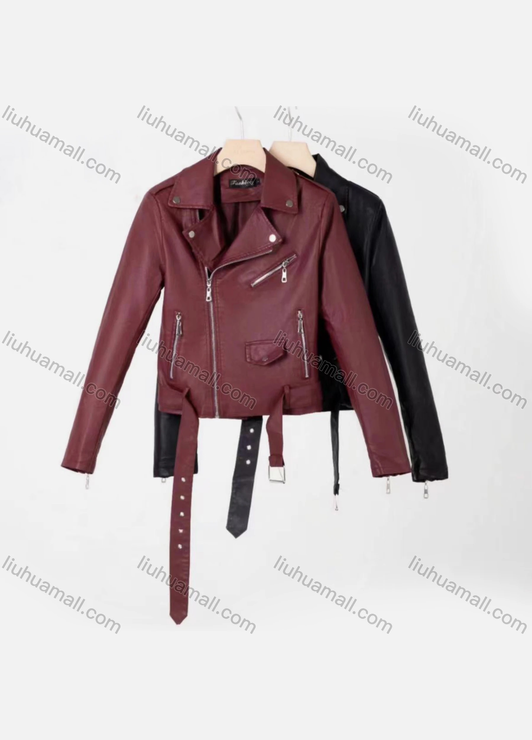 Wholesale Women's Casual Lapel Long Sleeve Zipper Plain Leather Crop Biker Jacket With Belt