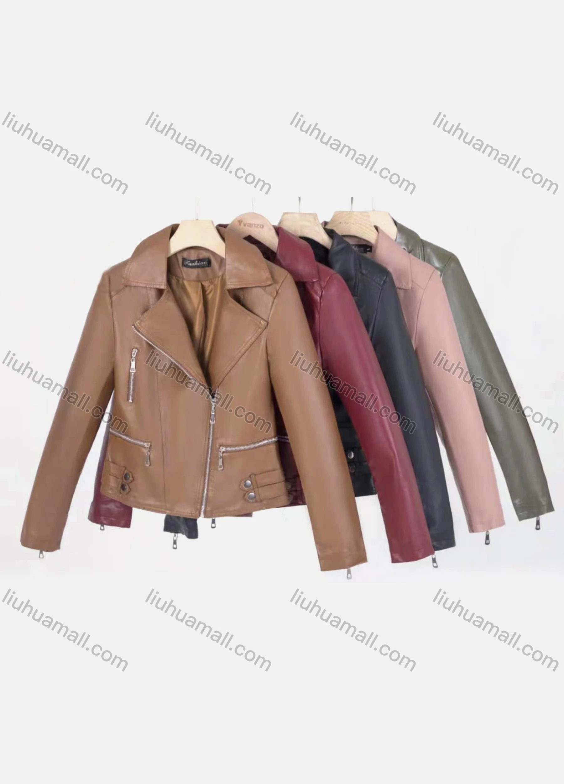 Wholesale Women's Casual Lapel Long Sleeve Zipper Plain Leather Crop Biker Jacket - Liuhuamall