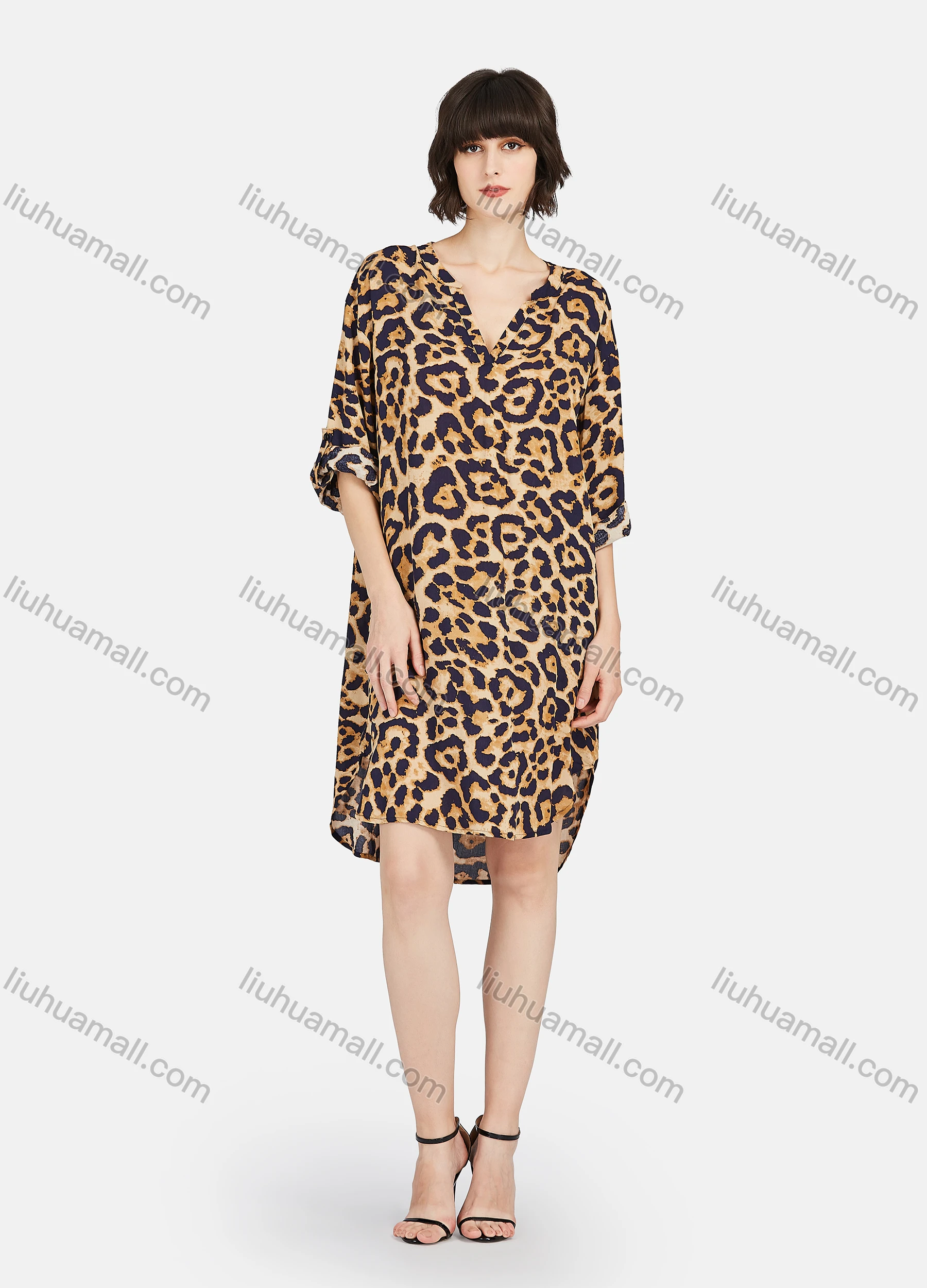 Wholesale Women's Casual Leopard Print V Neck 3/4 Sleeve Short Dress