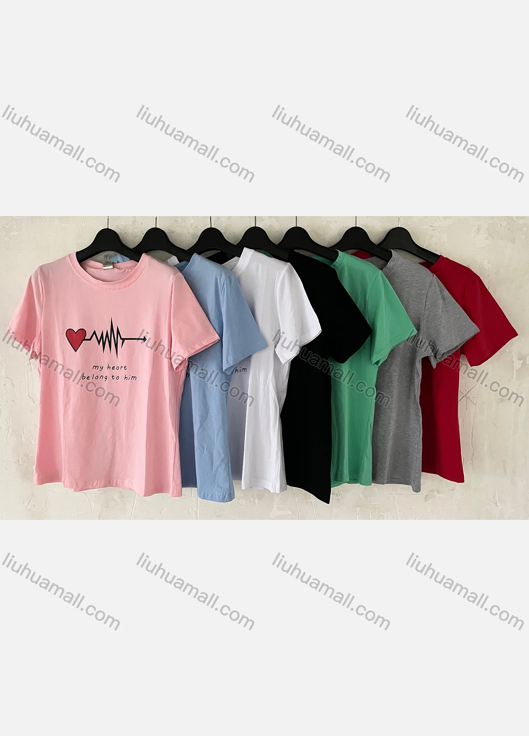 Wholesale Women's Casual Letter Heart Print Crew Neck Short Sleeve T-Shirt
