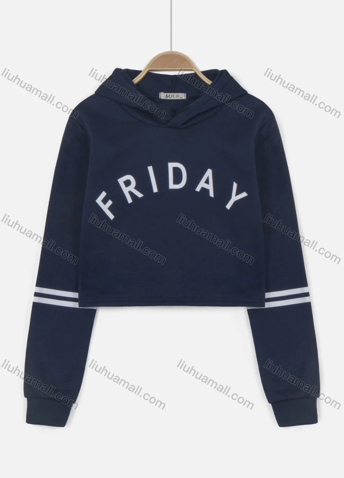 Wholesale Women's Casual Letter Print Cropped Long Sleeve Drawstring Hoodie