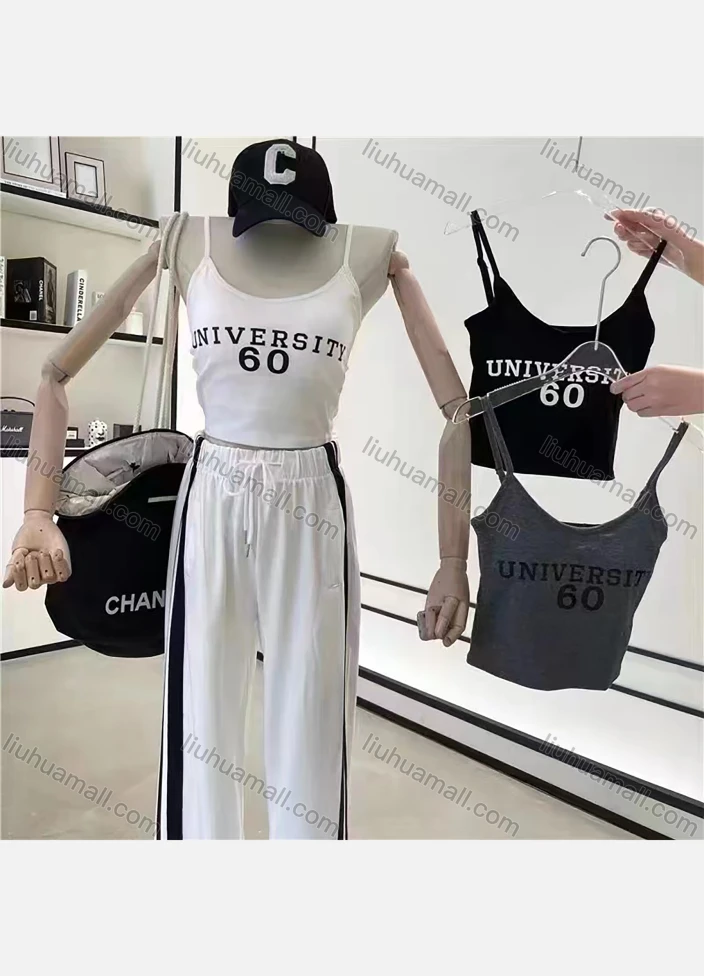 Wholesale Women's Casual Letter Print Spaghetti Straps Crop Cami Top