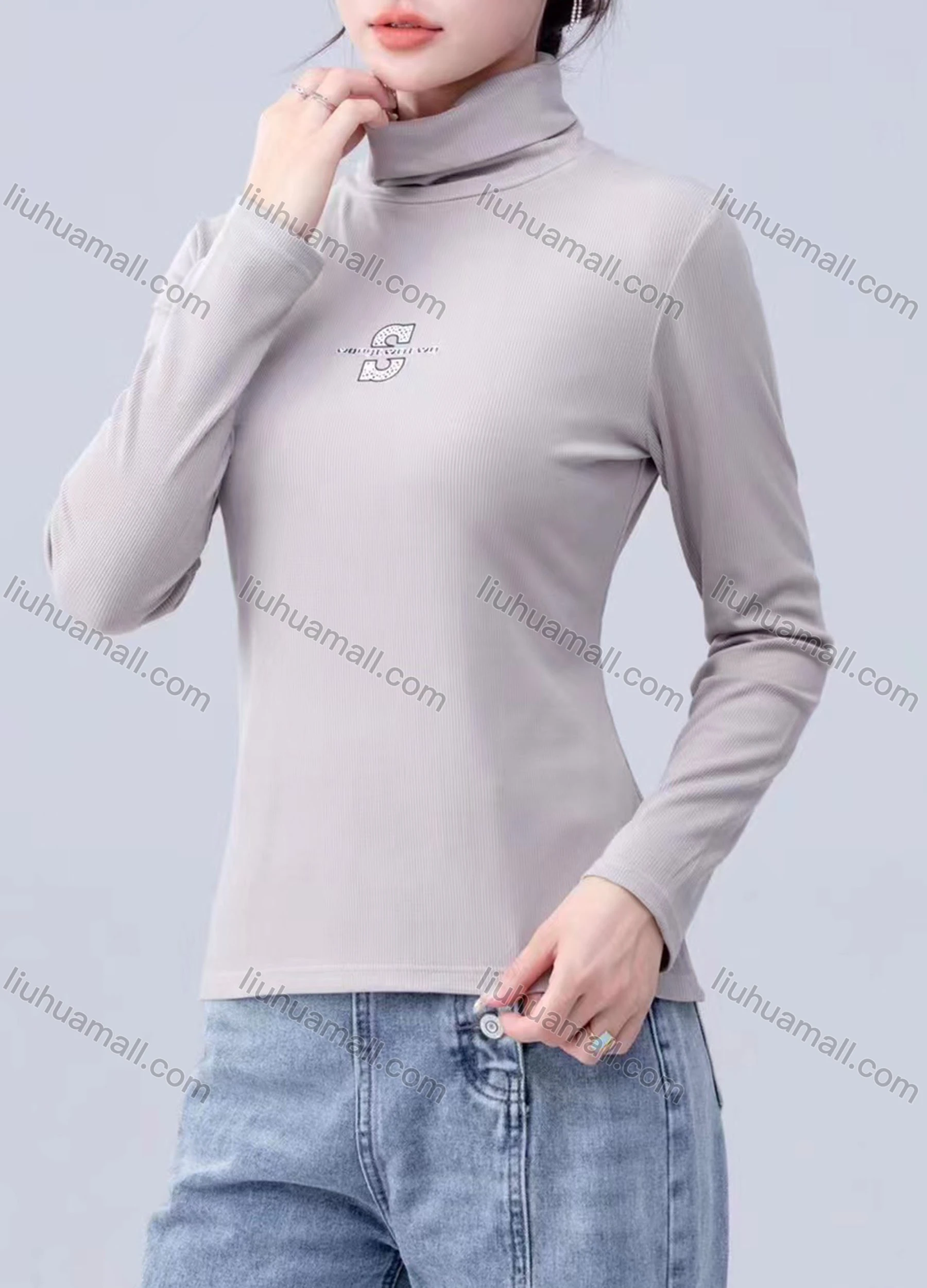 Wholesale Women's Casual Letter Print Turtleneck Long Sleeve Top