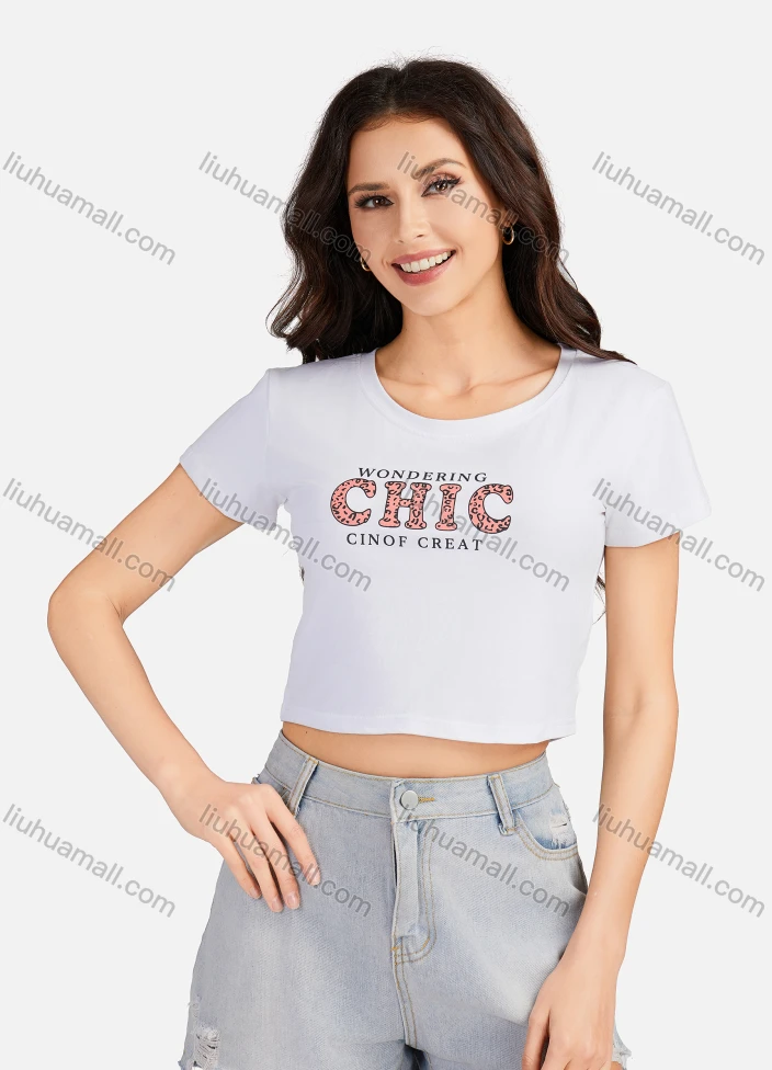 Wholesale Women's Casual Letter Round Neck Short Sleeve Crop T-shirt 3203#