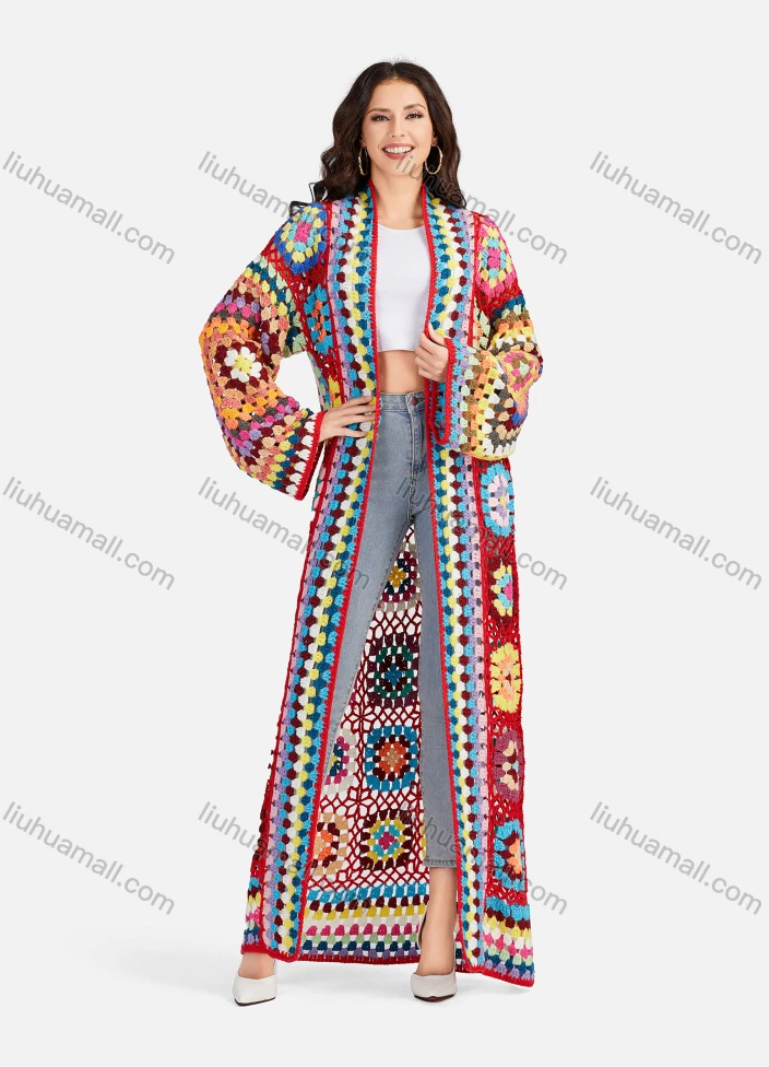 Wholesale Women's Casual Long Sleeve Open Front Floral Crochet Long Cardigan A497#
