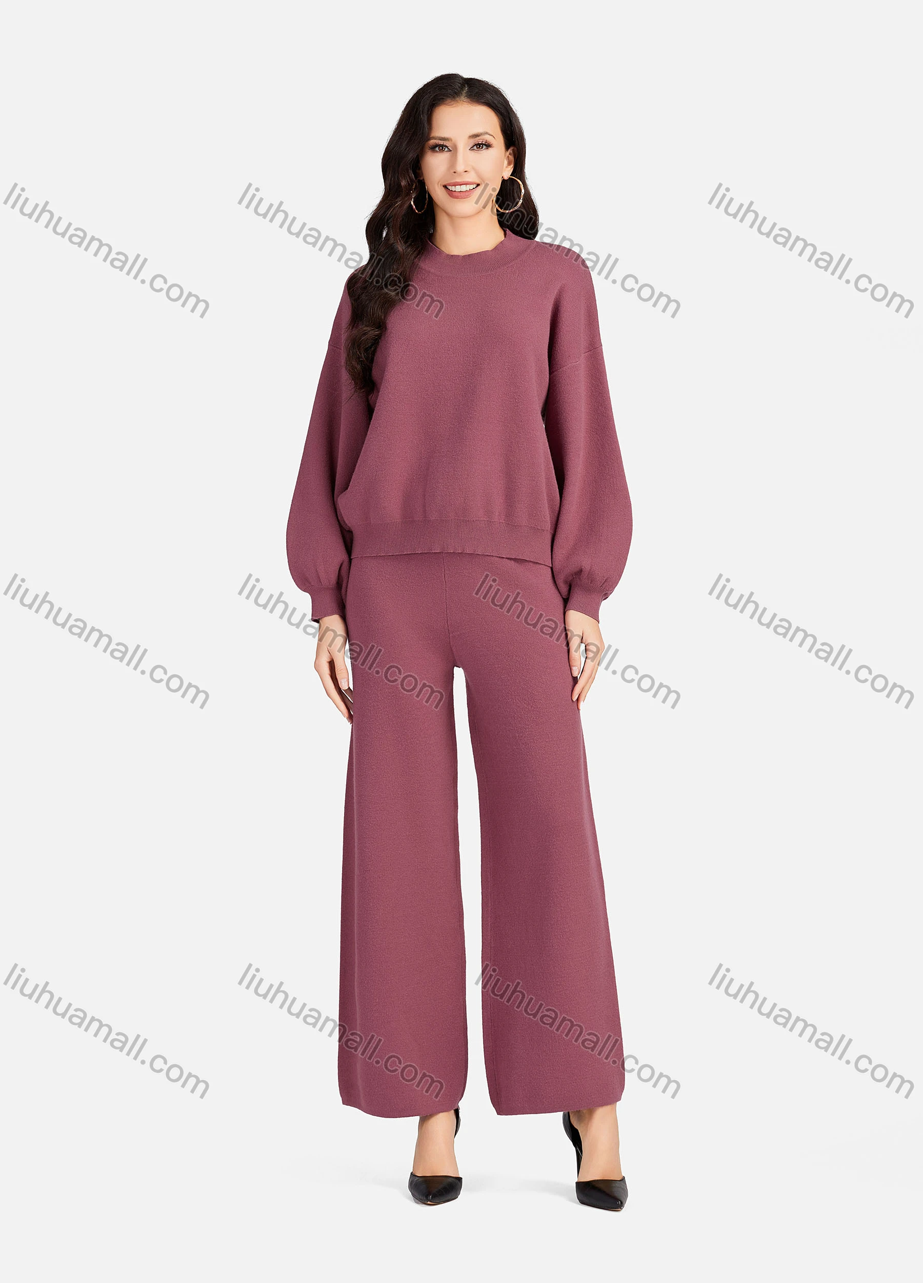 Wholesale Women's Casual Mock Neck Crop Knit Blouse 2-piece Set A467&A468#