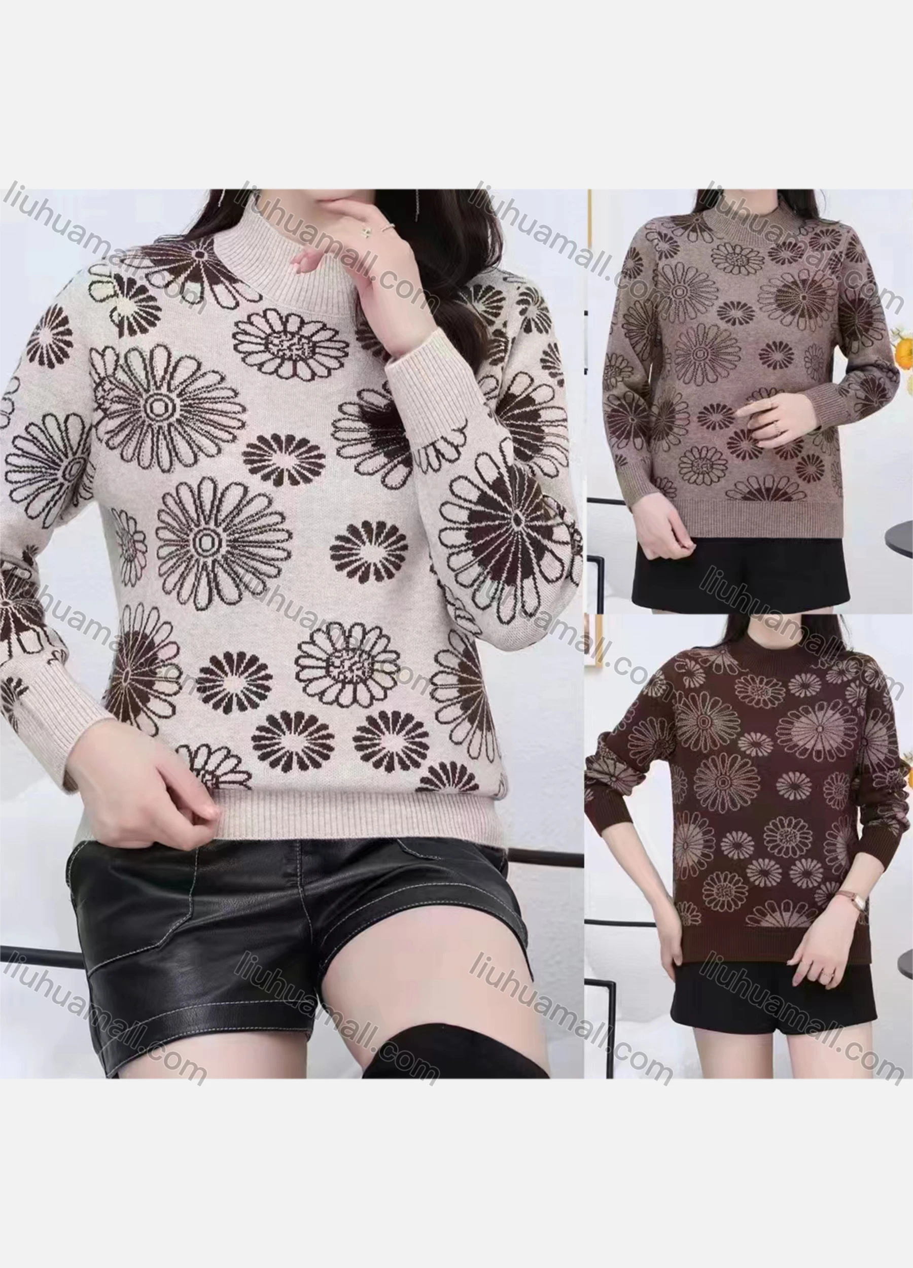 Wholesale Women's Casual Mock Neck Long Sleeve Floral Print Sweater