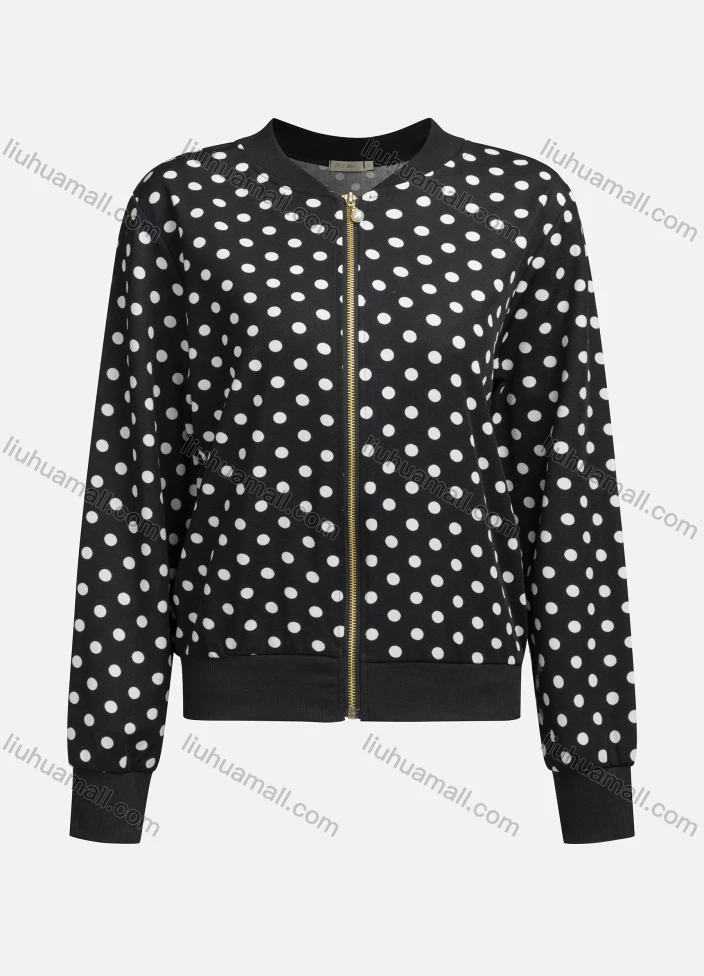 Wholesale Women's Casual Mock Neck Long Sleeve Pearl Zip Polka Dot Jacket 6411#