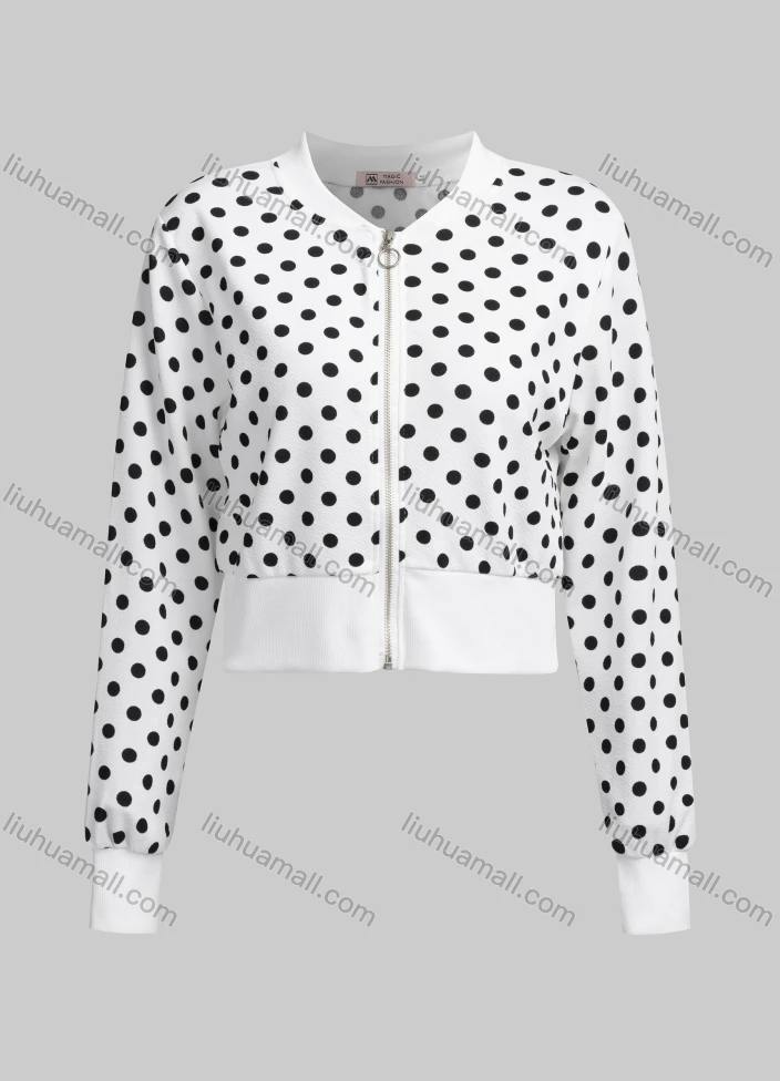 Wholesale Women's Casual Mock Neck Long Sleeve Zip Polka Dot Crop Jacket 6239#