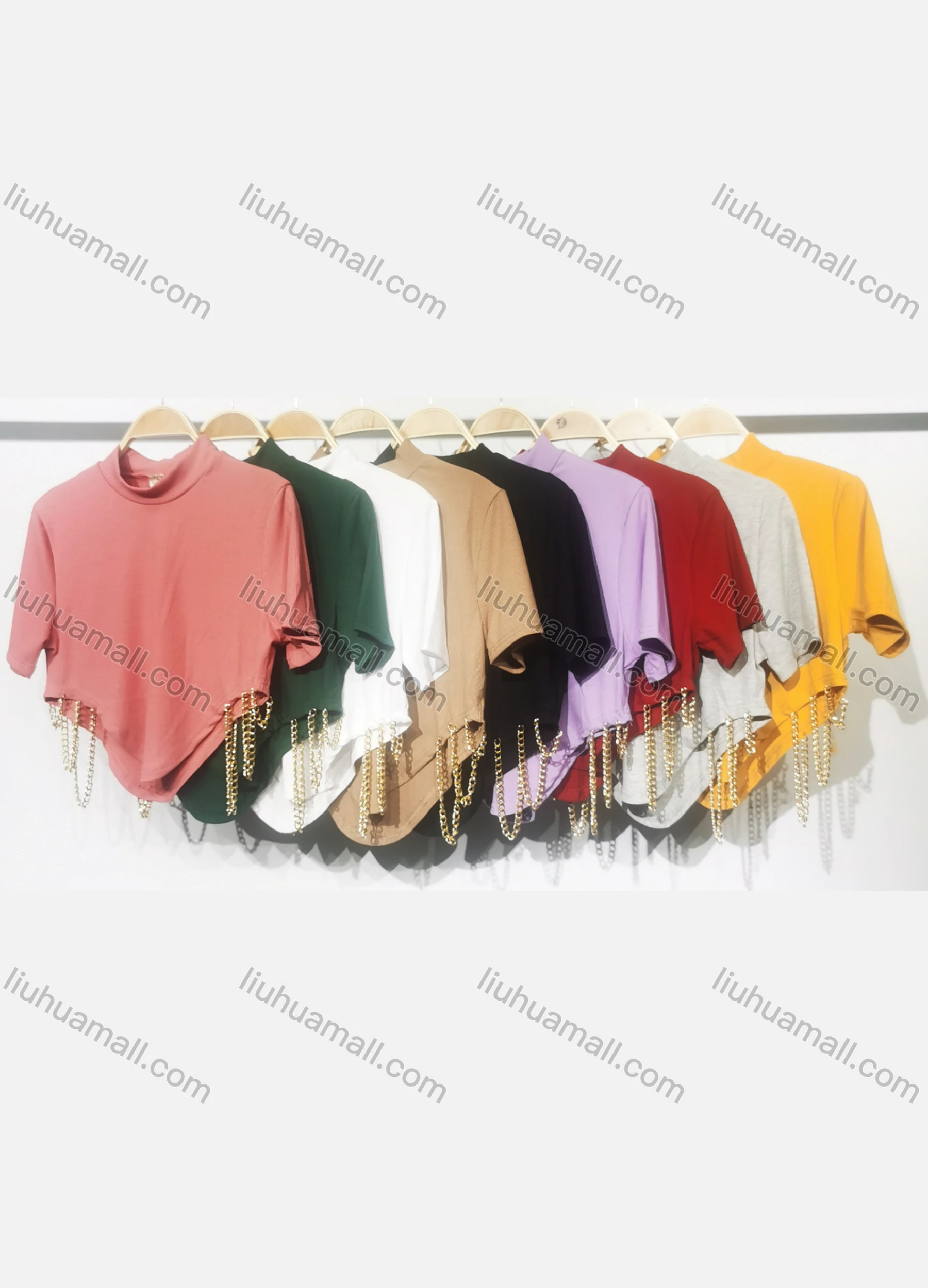 Wholesale Women's Casual Mock Neck Short Sleeve Chain Decro Crop Top